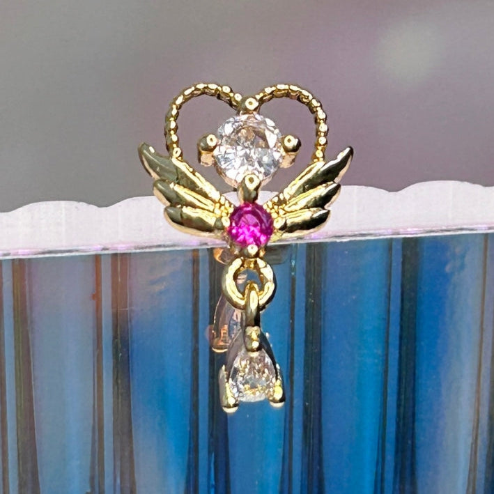 Angel Wing Heart Drop Piercing Stud