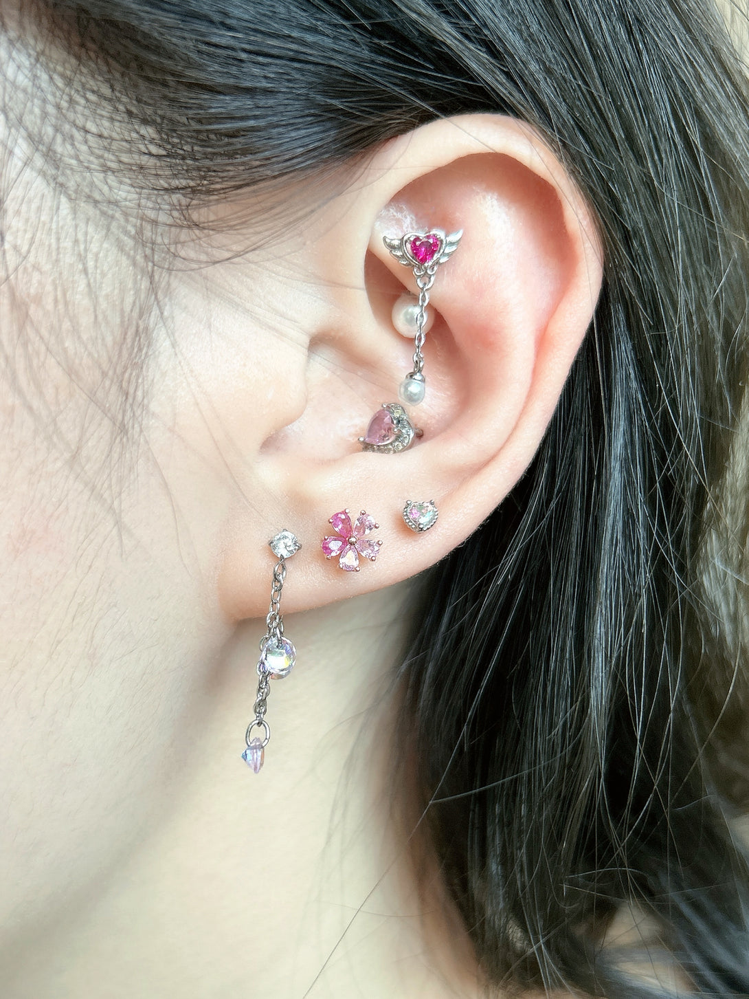 Korean Piercings Jewellery use a lot of colourful gems and crystal, different from traditional gold or sliver designs.