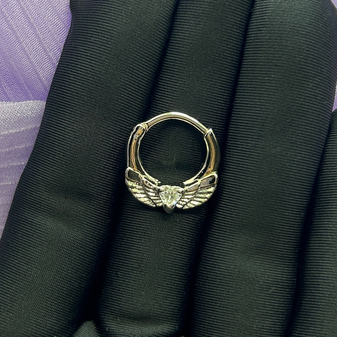 Angel Wings Crystal Heart Segment Ring