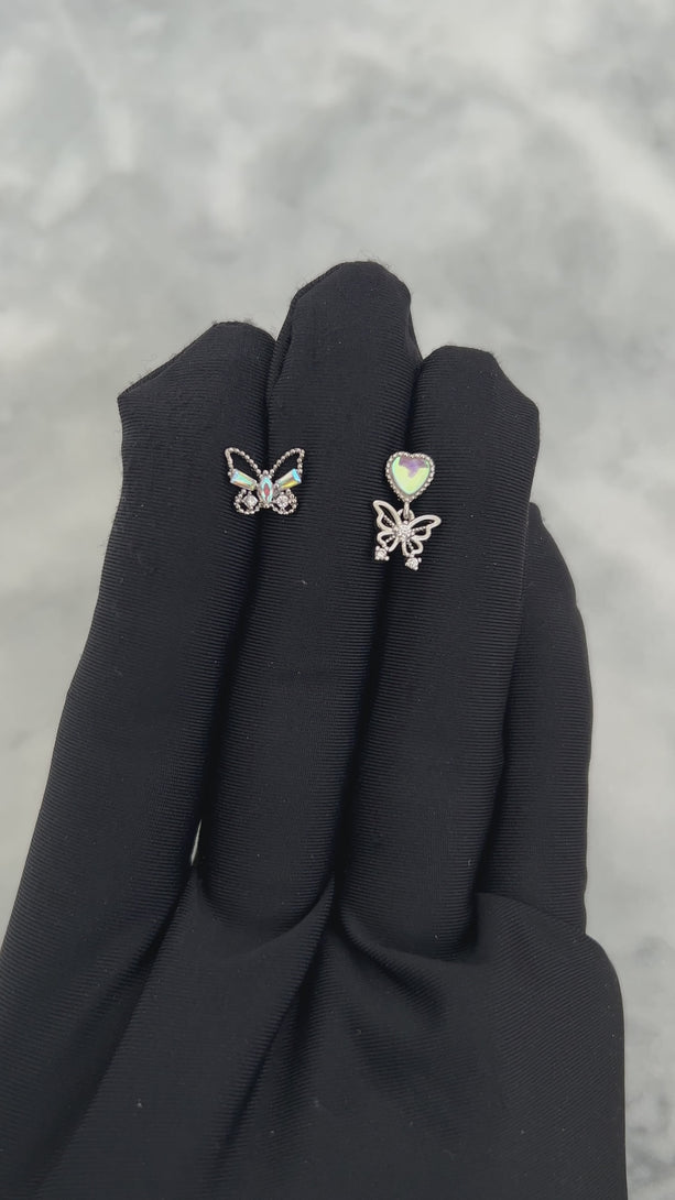 This Aurora Heart Butterfly Drop Cartilage Barbell Stud is the perfect accessory to make a unique statement. Featuring a classic aurora heart gemstone set in silver, the design is enhanced with a dainty drop butterfly and modern Y2K accents. Make an unforgettable impression with this stylish and cutely crafted piece.