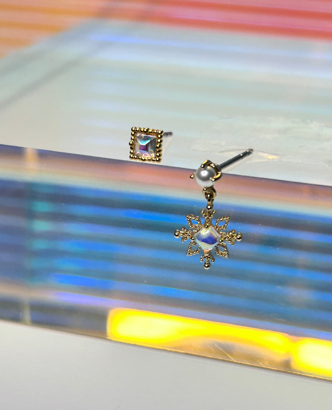 Transform your look with the Aurora Snow Flake Pearl Mismatched Earrings.