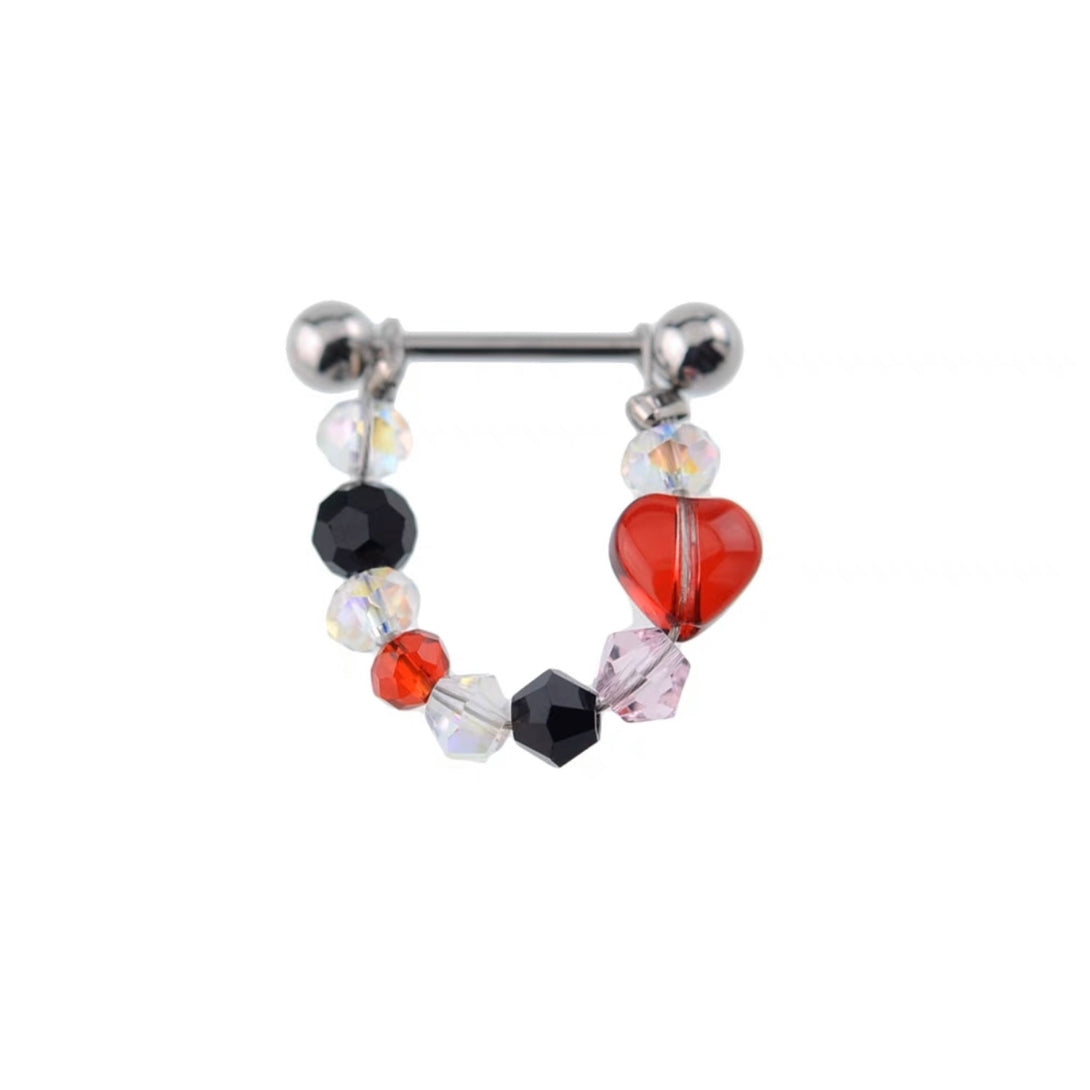 Beaded Red Heart Barbell Stud