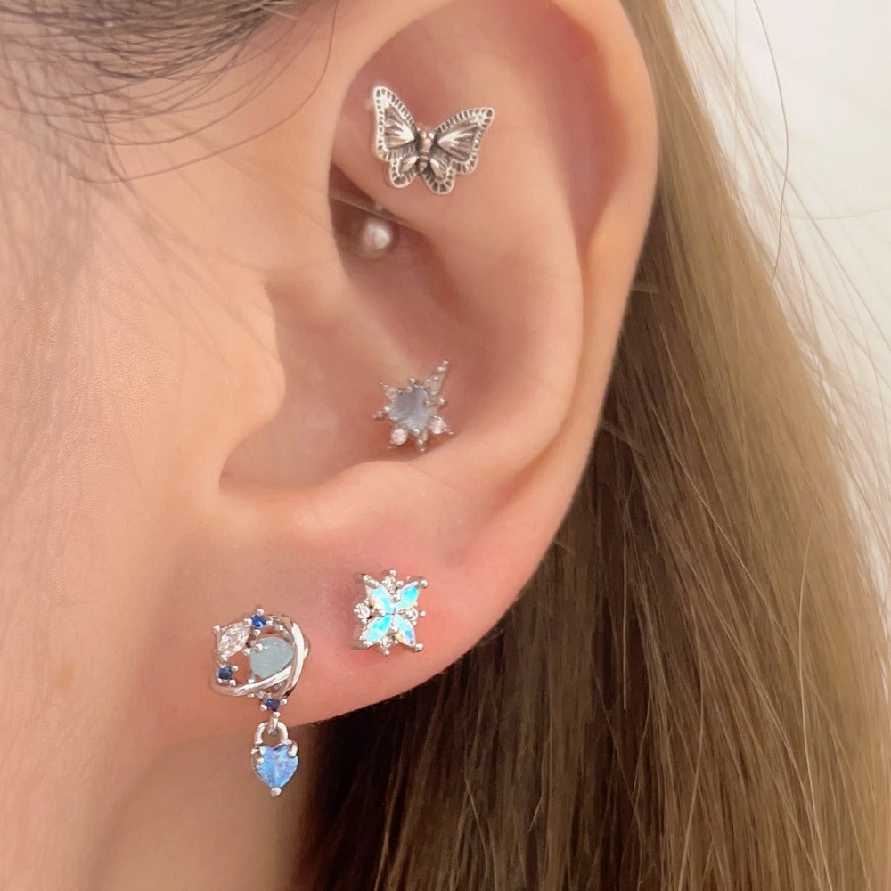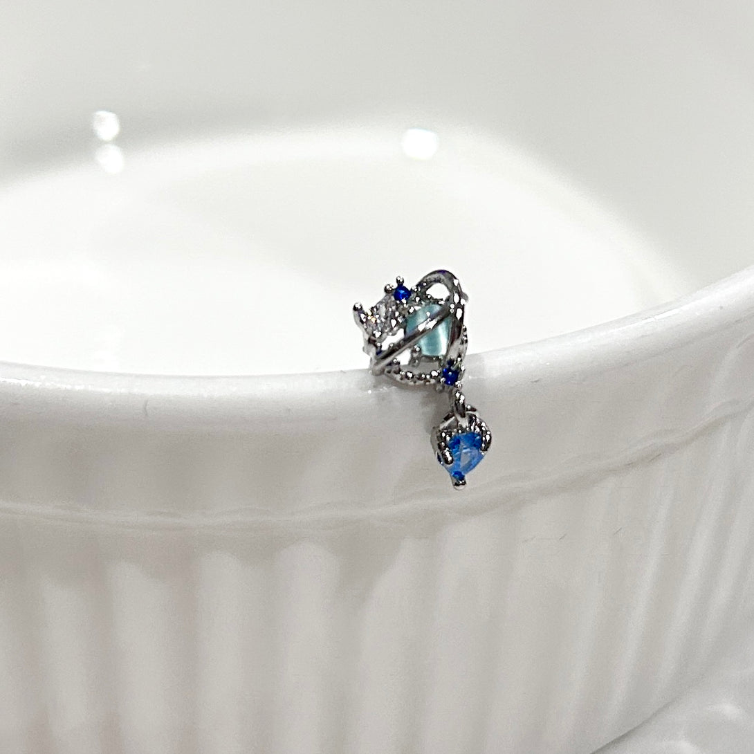 Blue Moon Stone Planet Heart Drop Cartilage Barbell Stud