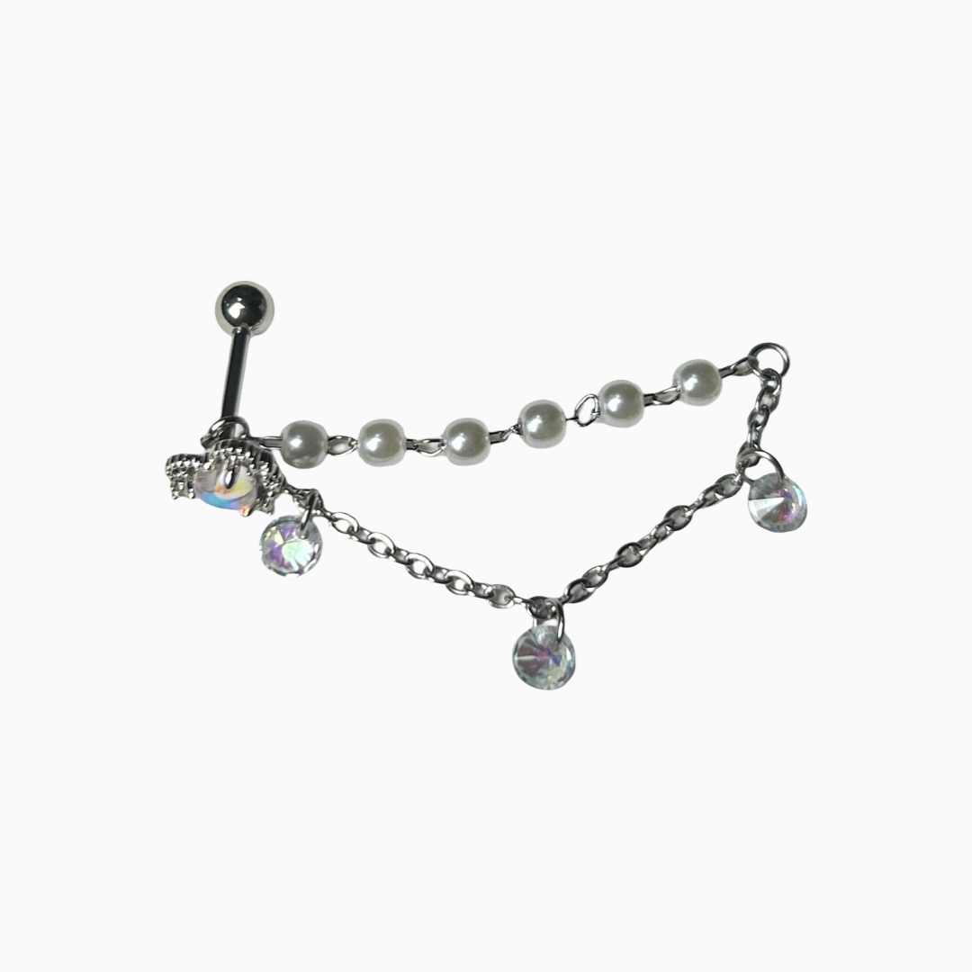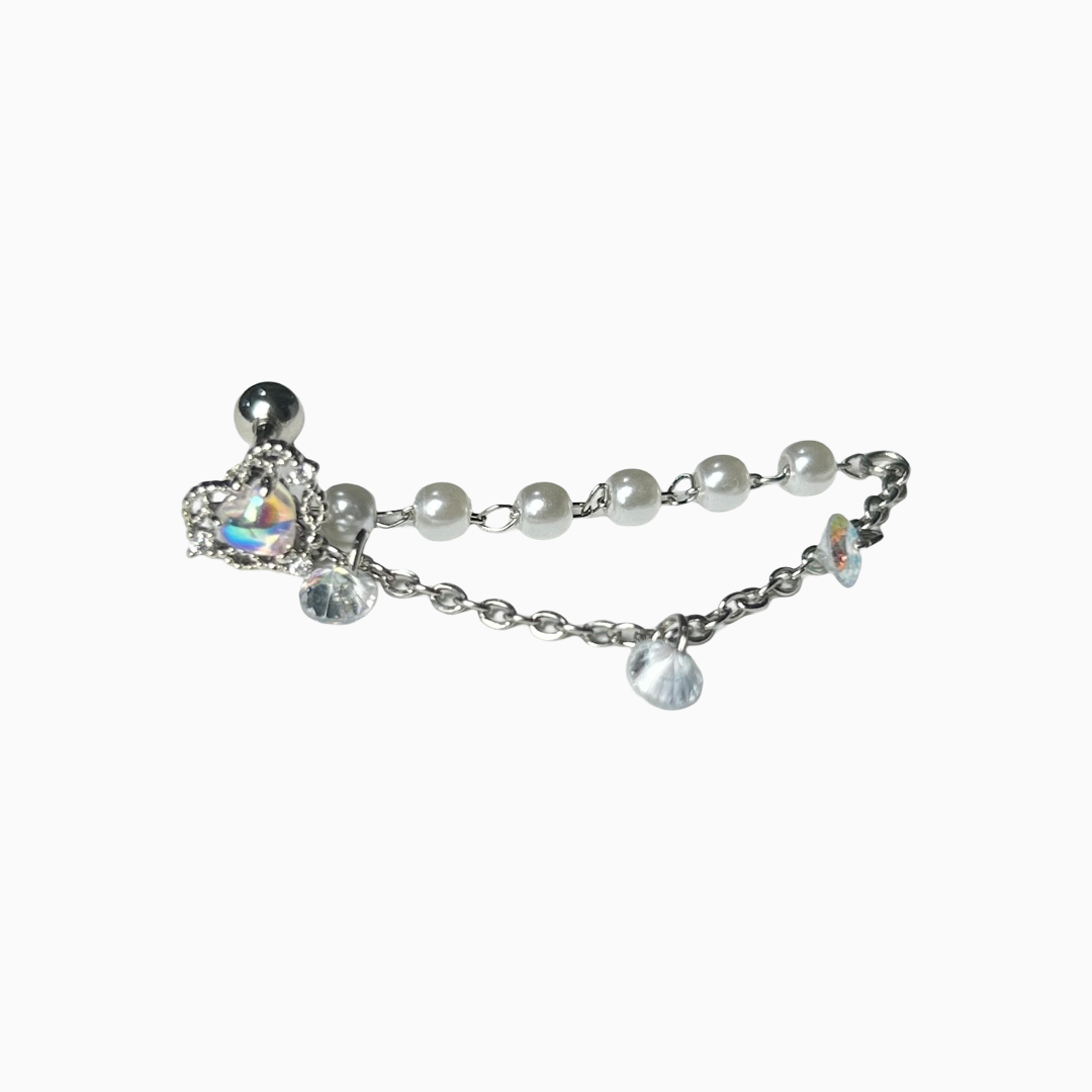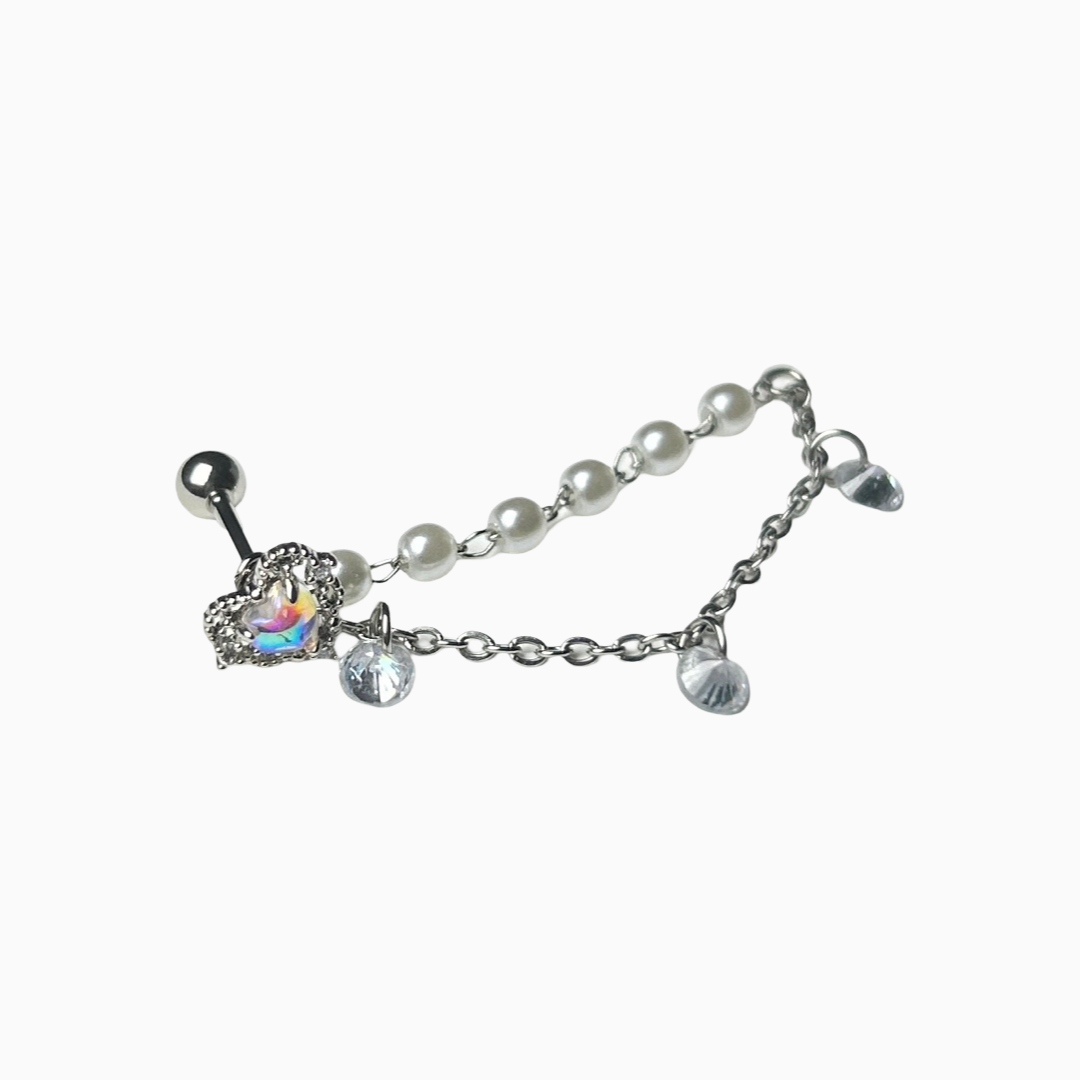Aurora Heart Barbell Stud With Crystal & Pearl Chain