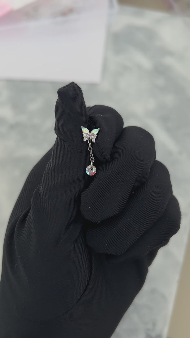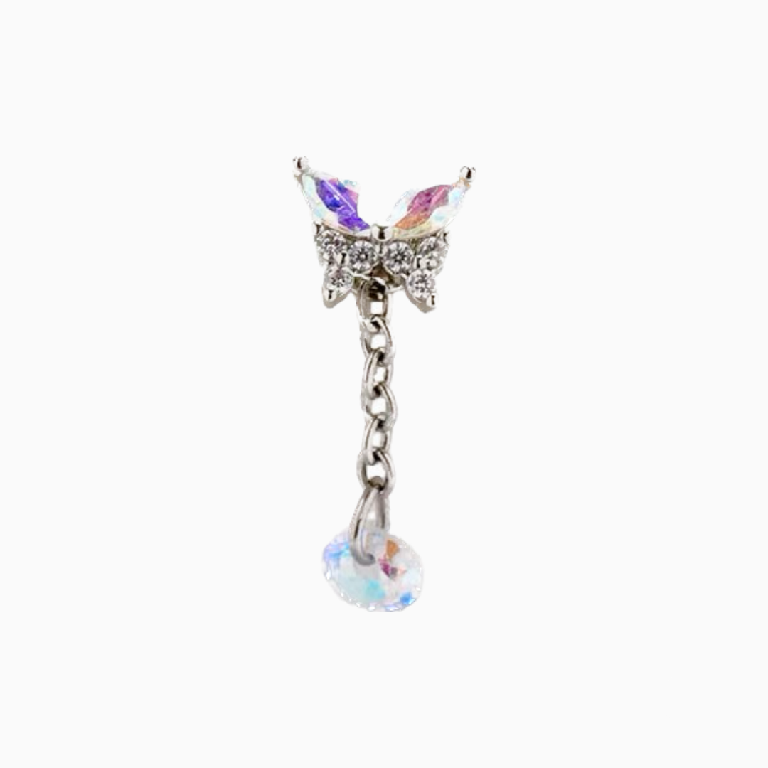 Crystal Butterfly Barbell Stud With Crystal Drop Chain