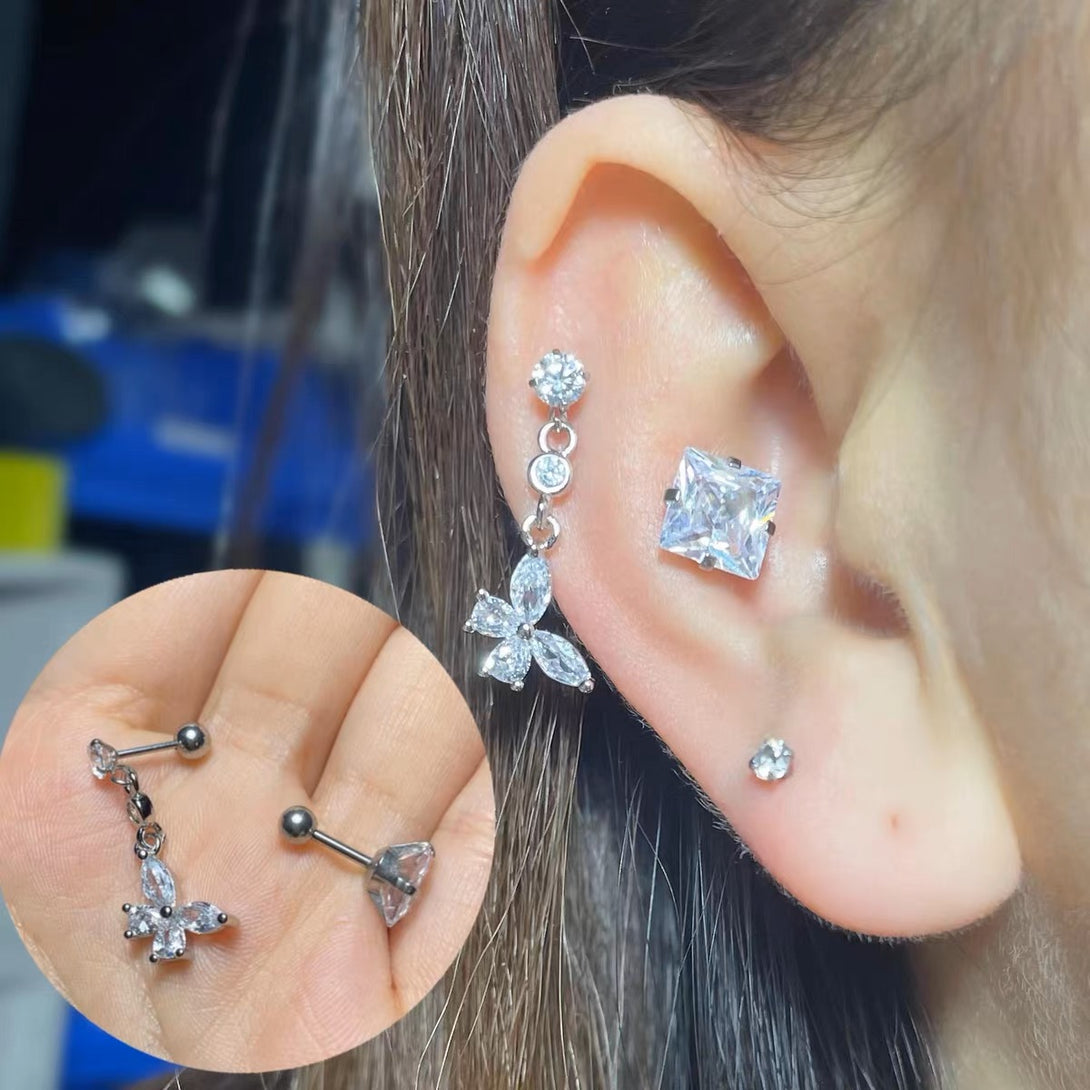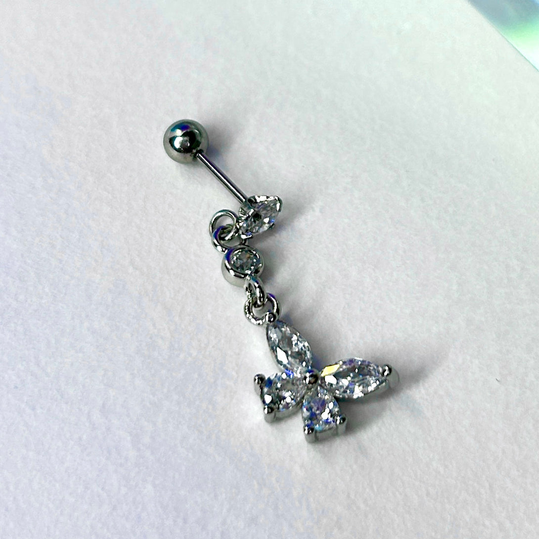 Crystal Butterfly Drop Cartilage Barbell Stud