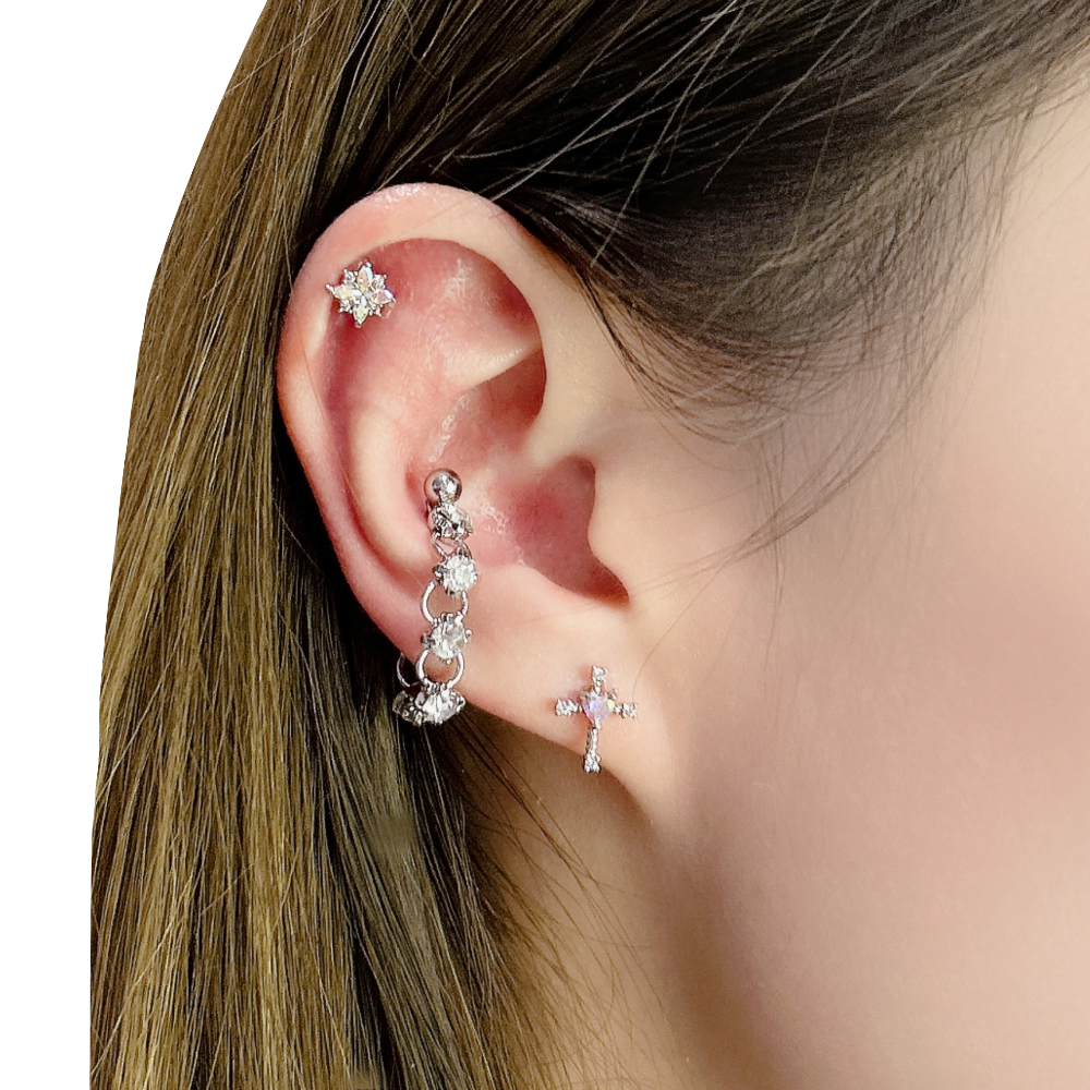 Korean Piercings Jewellery use a lot of colourful gems and crystal, different from traditional gold or sliver designs.