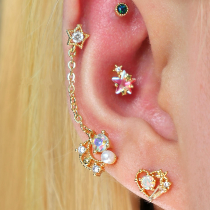 Korean Piercings Jewellery use a lot of colourful gems and crystal, different from traditional gold or sliver designs.