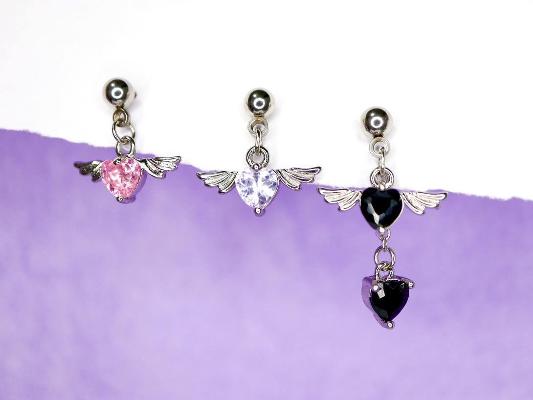 Double Dark Angel Heart Drop Barbell Stud