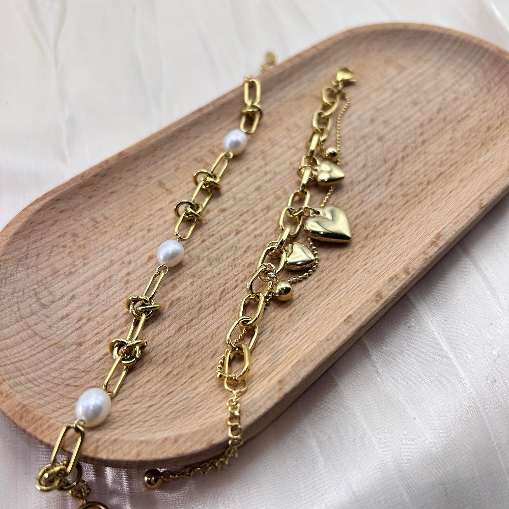 This exquisite Golden Heart Bracelet is crafted from 18K gold plating and features a waterproof design, making it suitable for daily wear. It comes with a 4cm extension and measures 16cm in length.