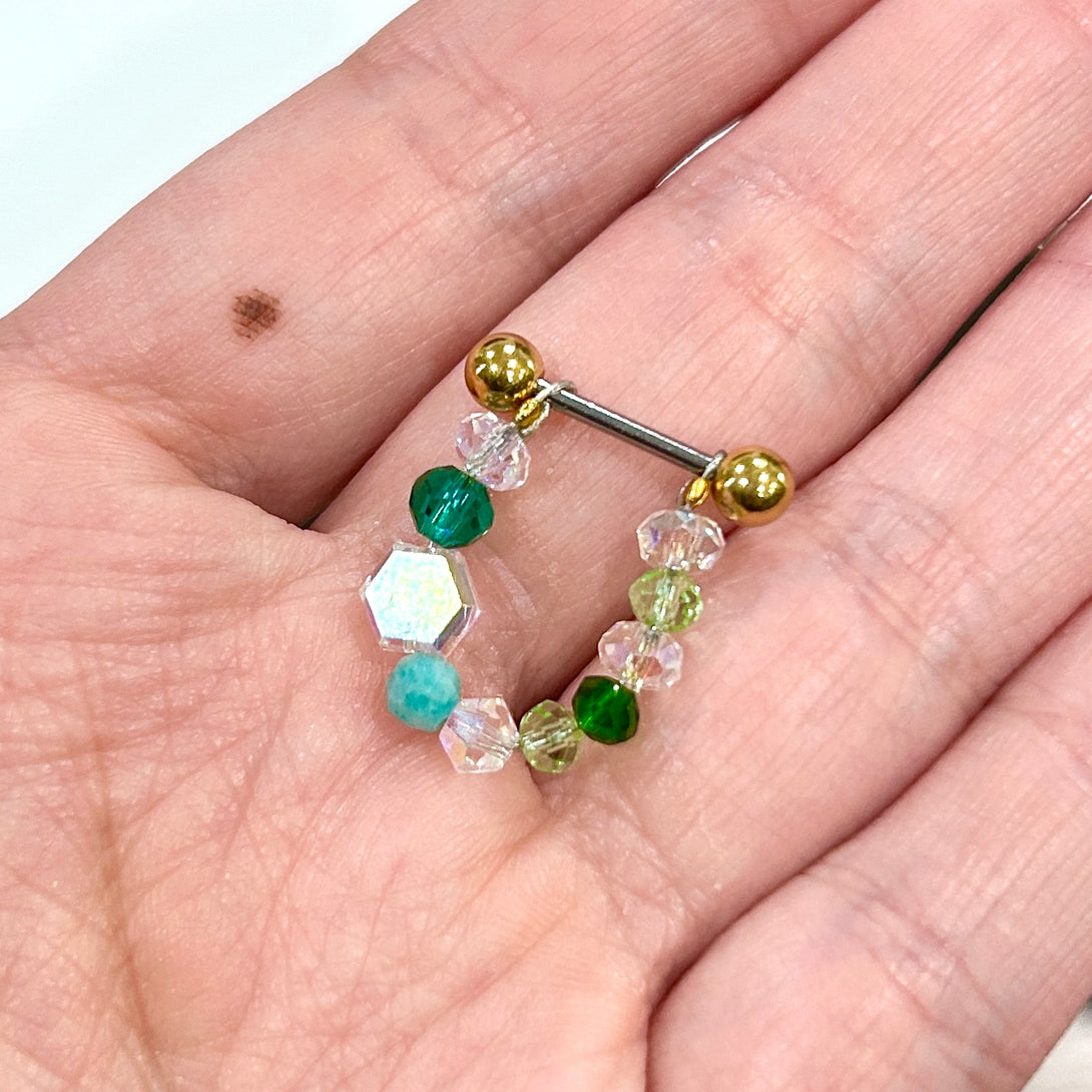 Green Beaded Barbell Stud