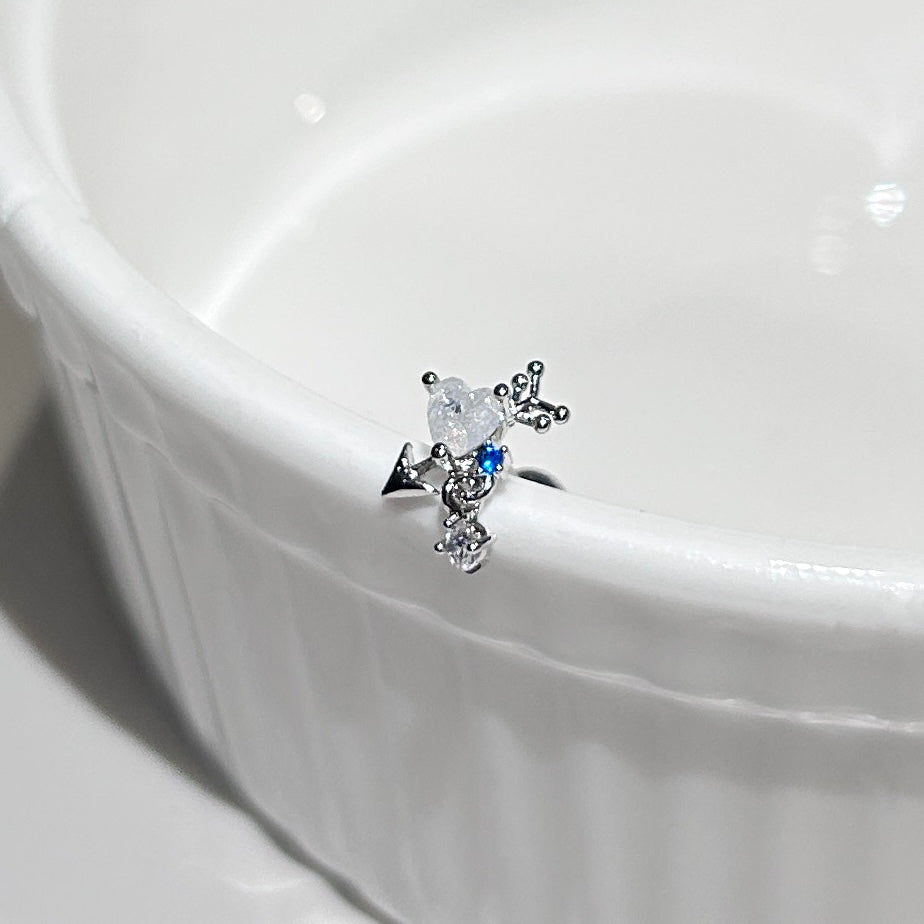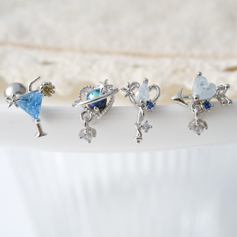 Ice Blue Heart Arrow Cartilage Barbell Stud