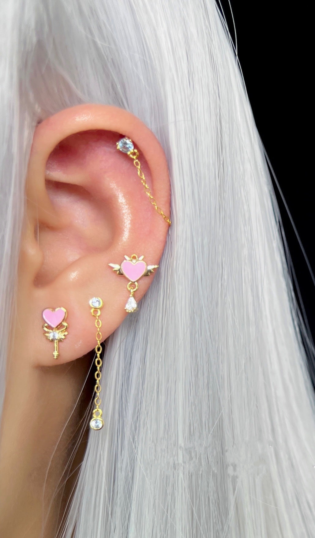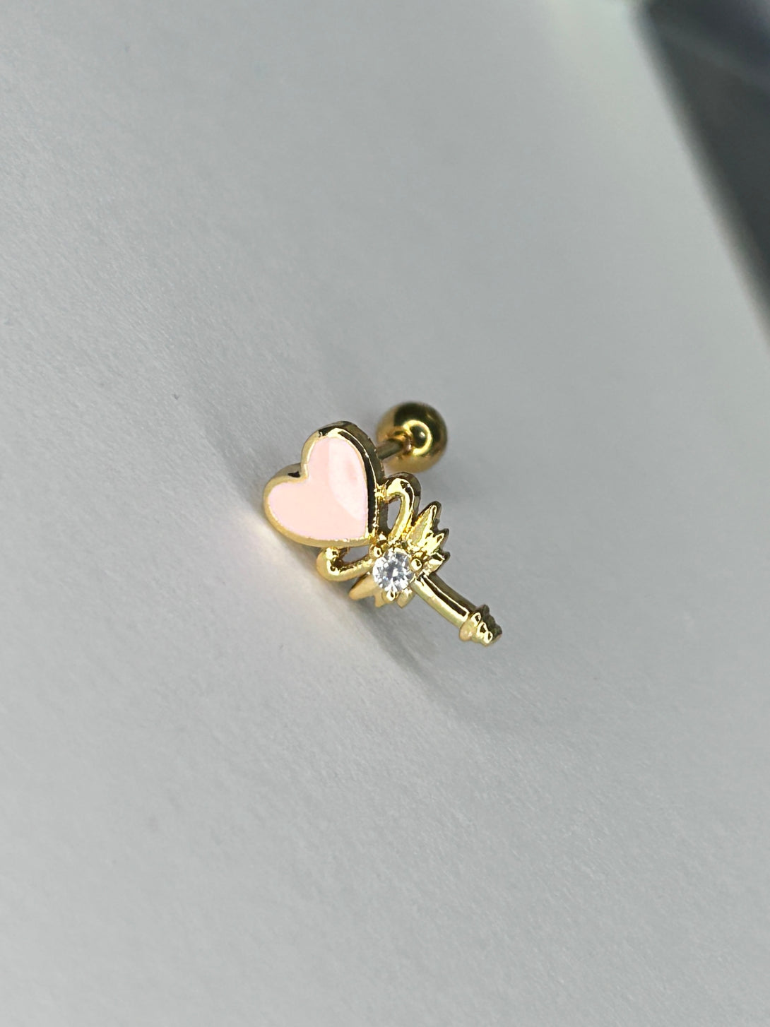 Pink Heart Magic Ward Cartilage Barbell Stud