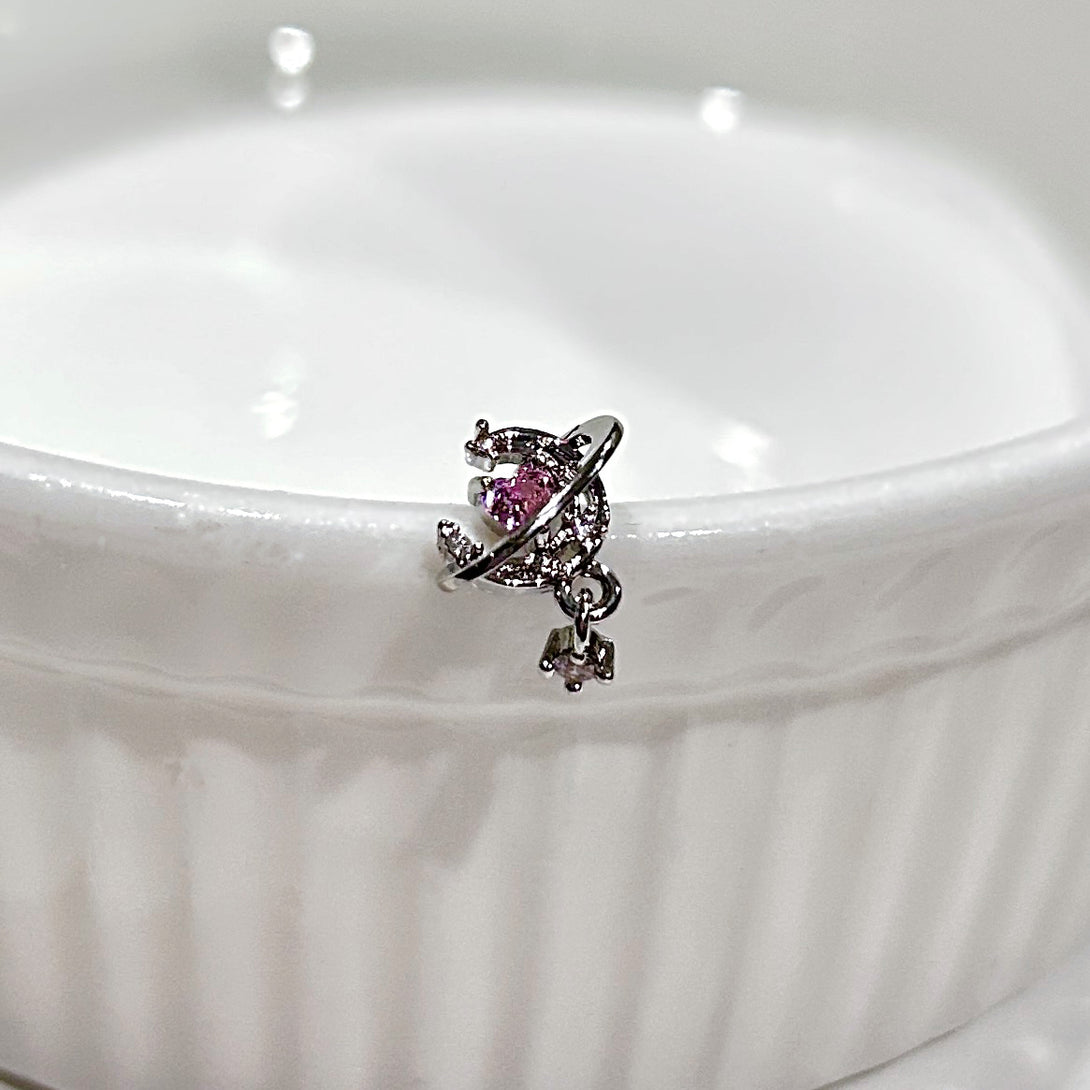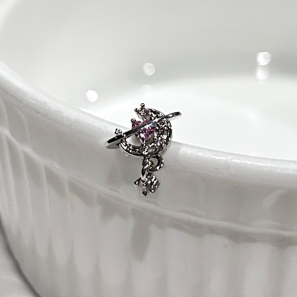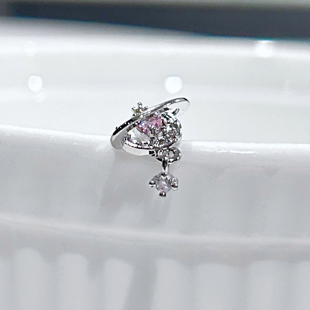 Pink Heart Planet Drop Cartilage Barbell Stud
