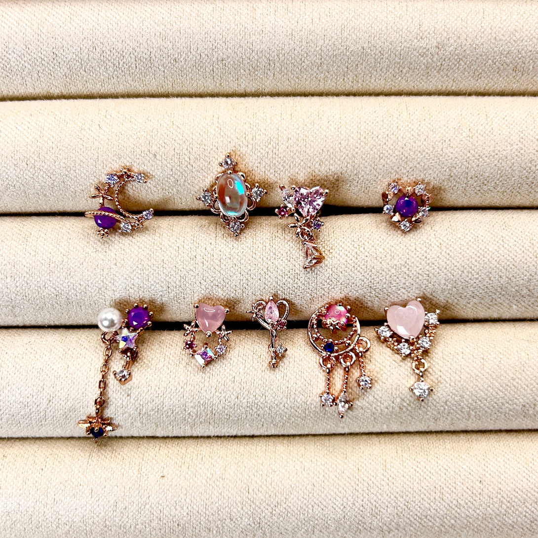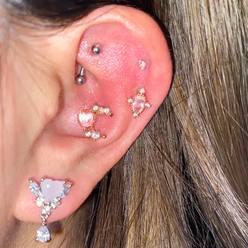 Korean Piercings Jewellery use a lot of colourful gems and crystal, different from traditional gold or sliver designs.
