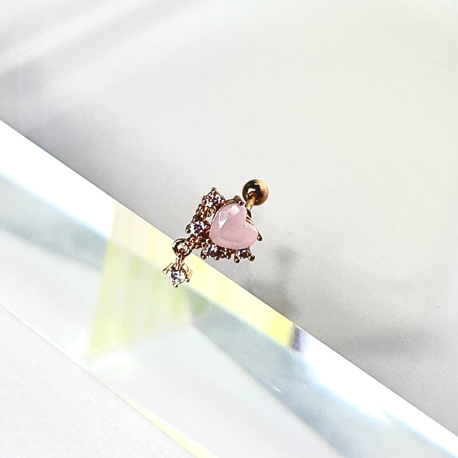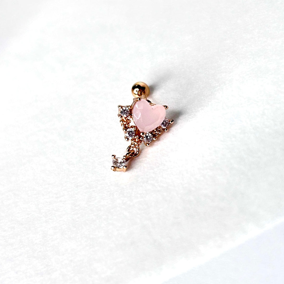 Heart With Diamond Drop Cartilage Barbell Stud