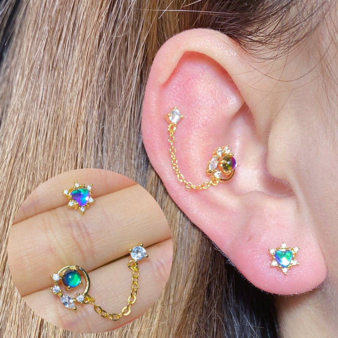 Korean Piercings Jewellery use a lot of colourful gems and crystal, different from traditional gold or sliver designs.