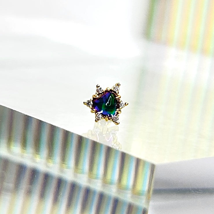 Hexagram Rainbow Heart Gem Cartilage Barbell Stud
