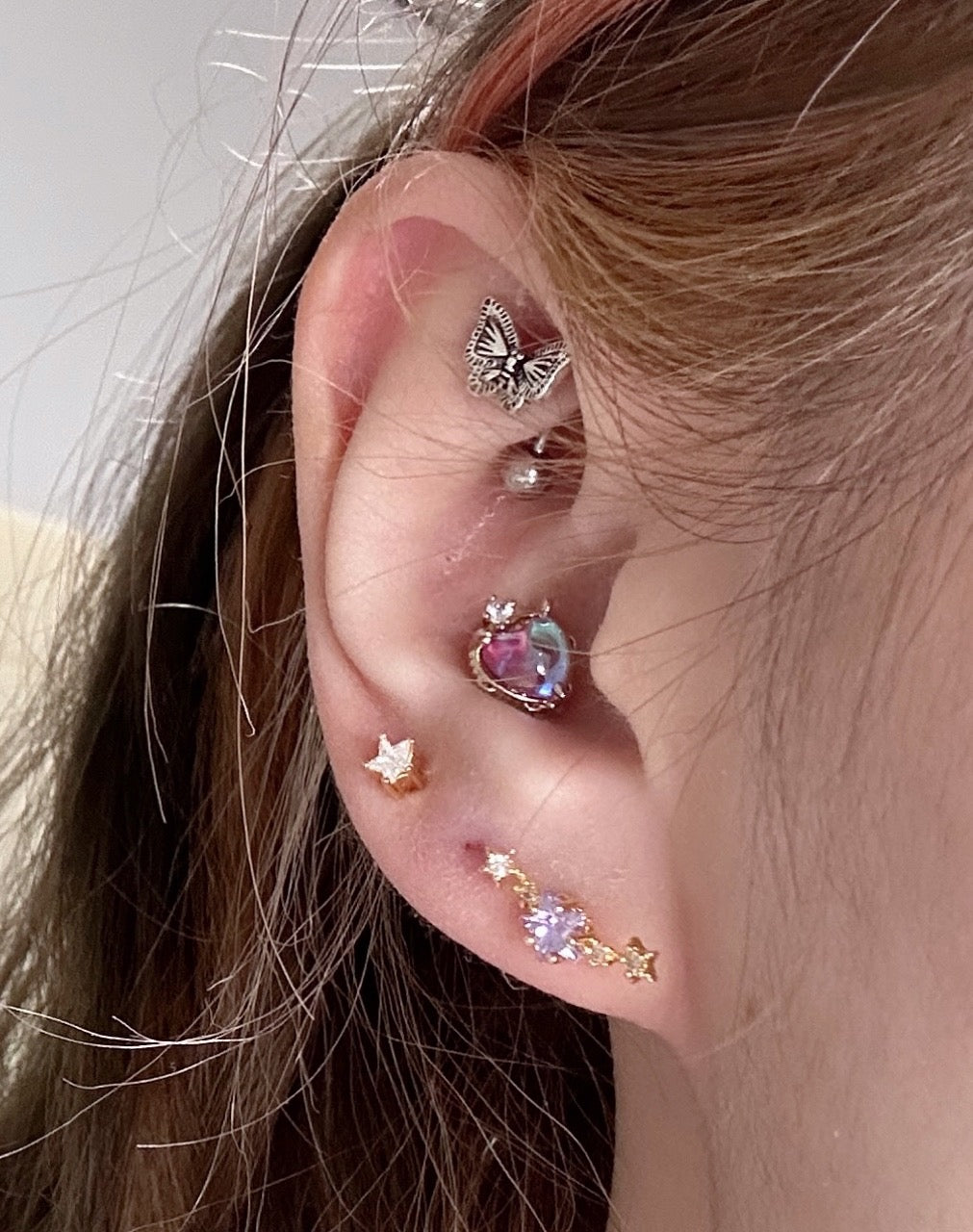 Korean Piercings Jewellery use a lot of colourful gems and crystal, different from traditional gold or sliver designs.