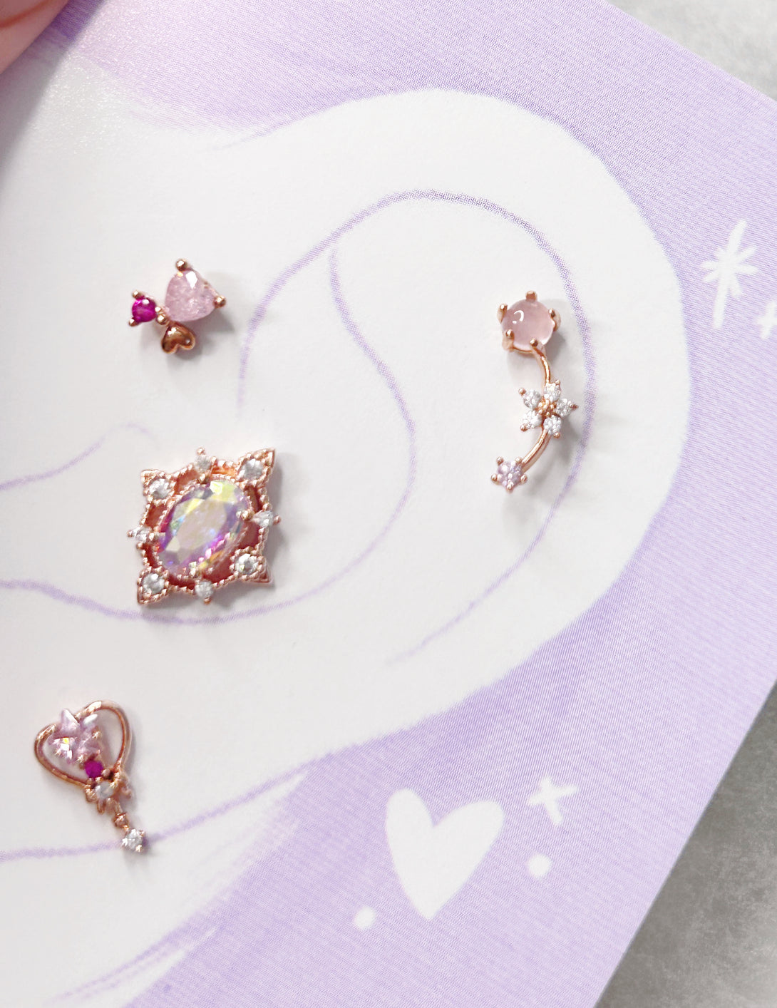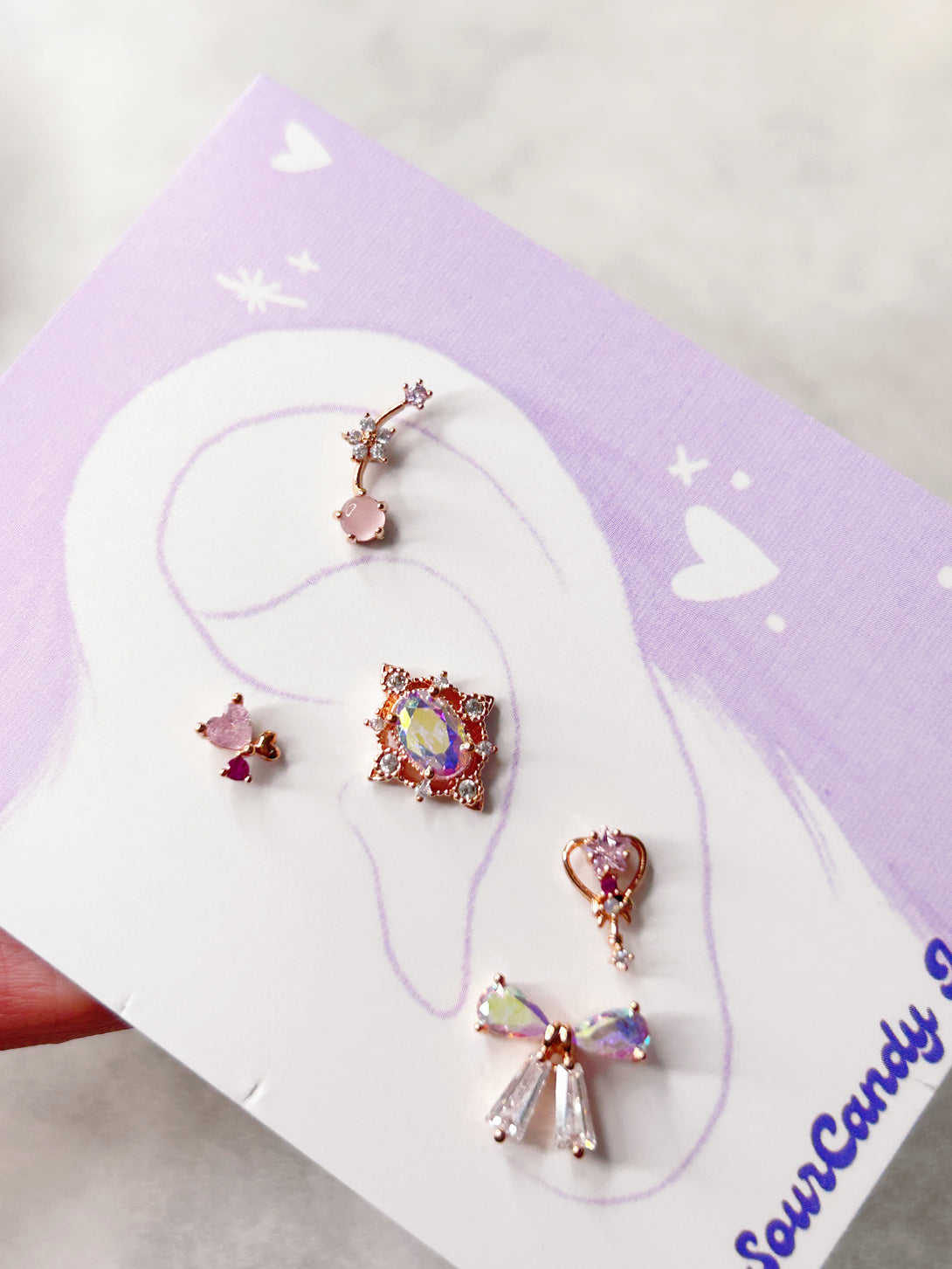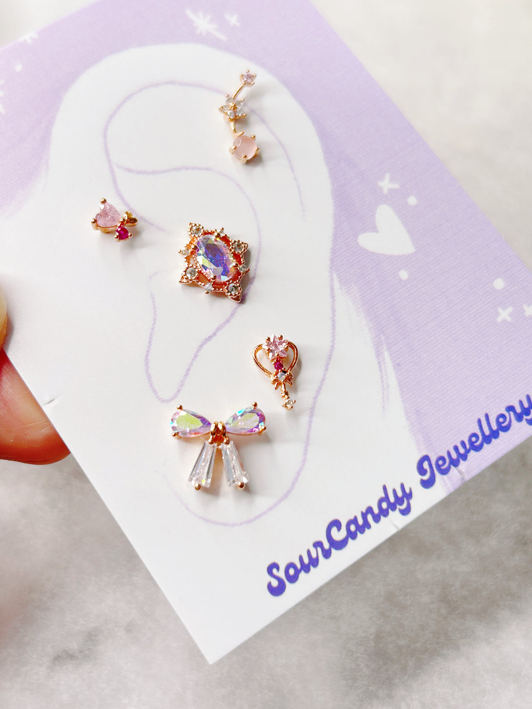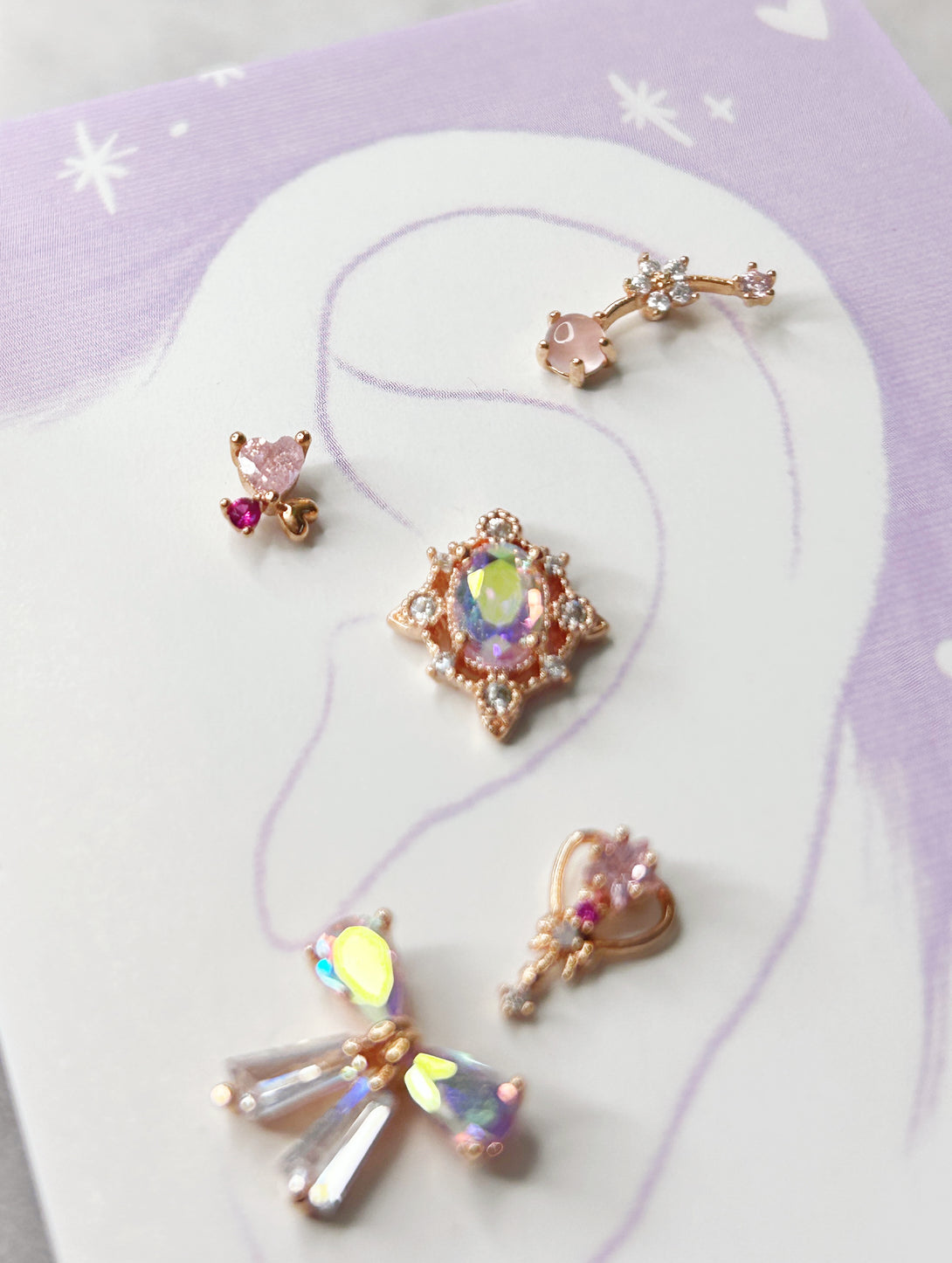 Korean Piercings Jewellery use a lot of colourful gems and crystal, different from traditional gold or sliver designs.