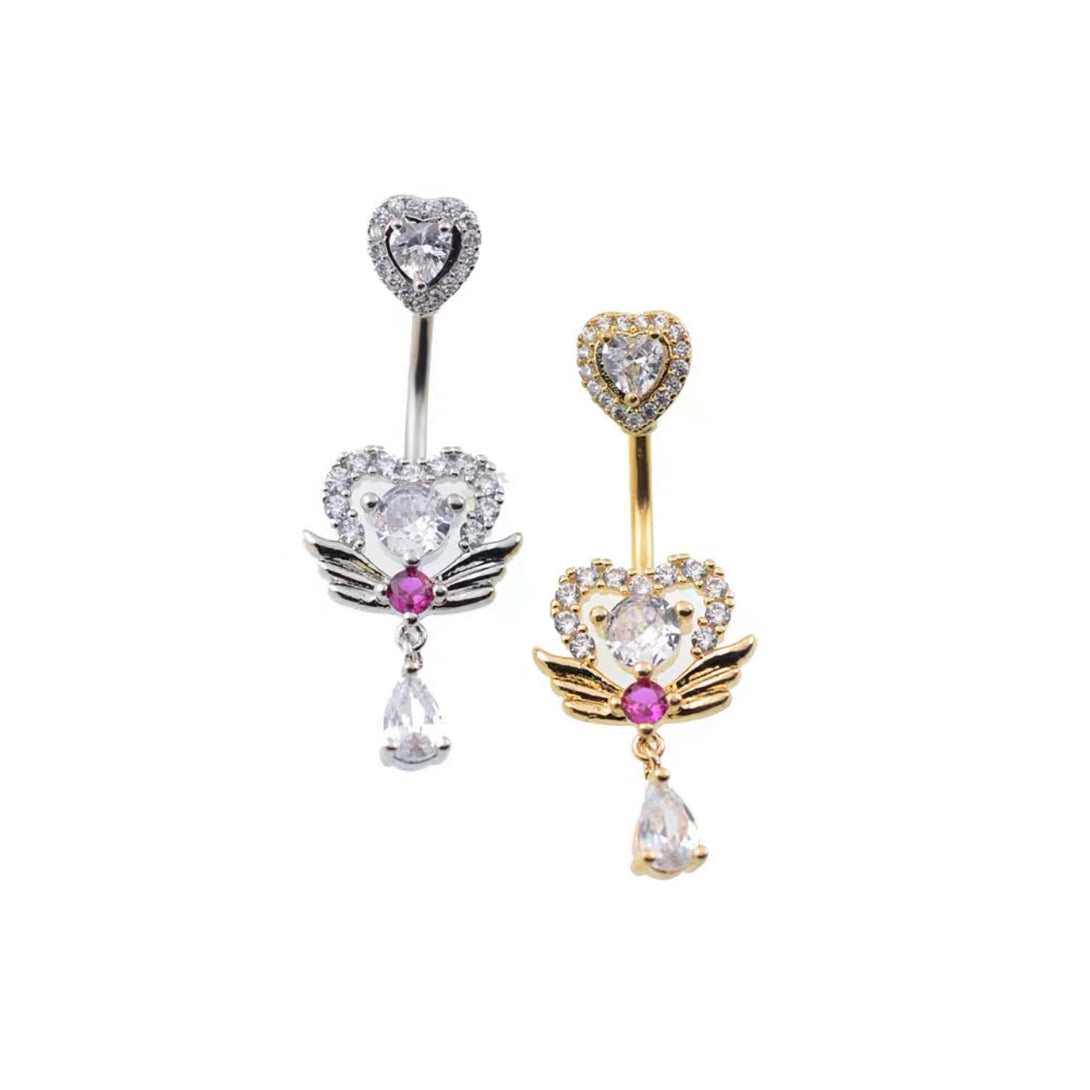 Magic Angel Wing Heart Crystal Navel Ring
