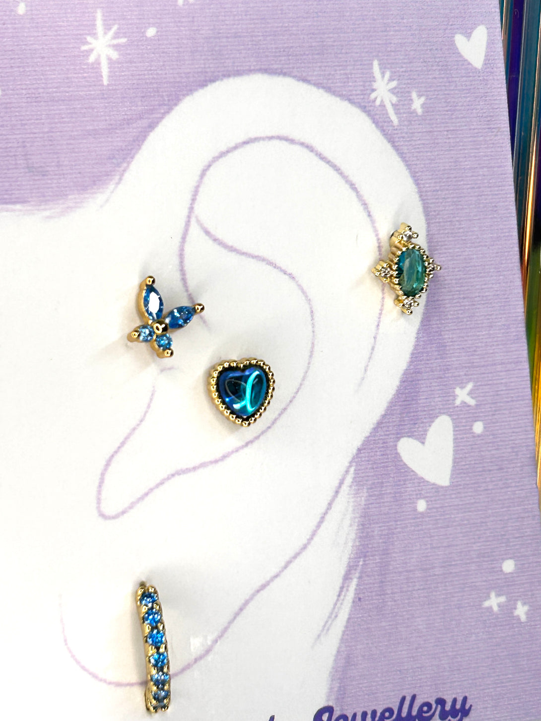 Korean Piercings Jewellery use a lot of colourful gems and crystal, different from traditional gold or sliver designs.