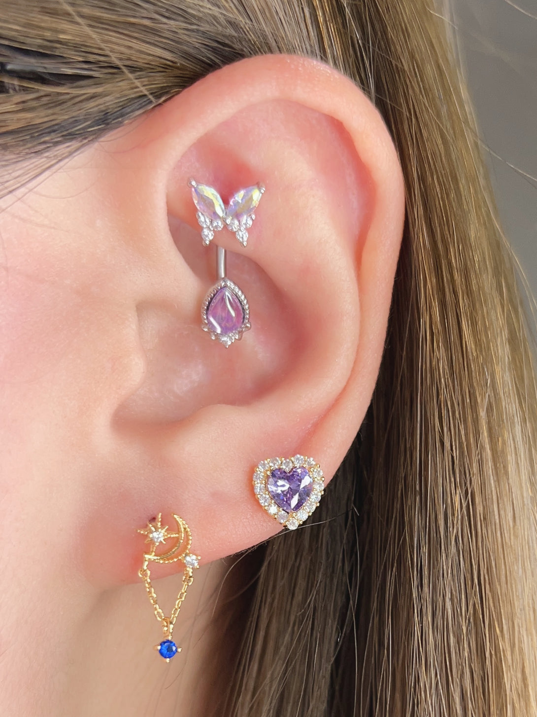 Moon Night Crystal Drop Cartilage Barbell Stud