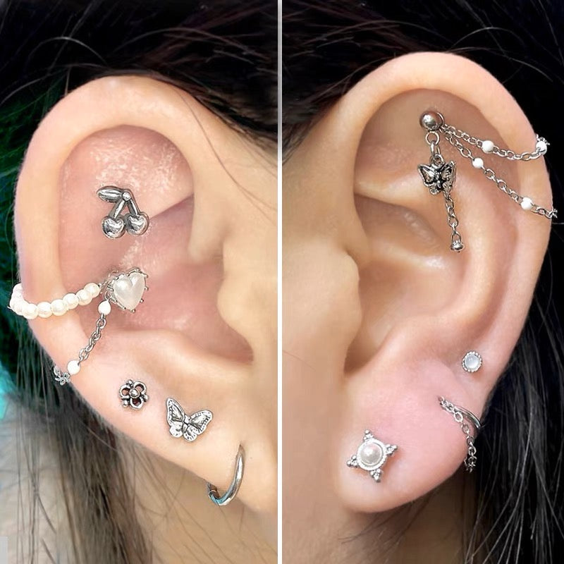 Korean Piercings Jewellery use a lot of colourful gems and crystal, different from traditional gold or sliver designs.