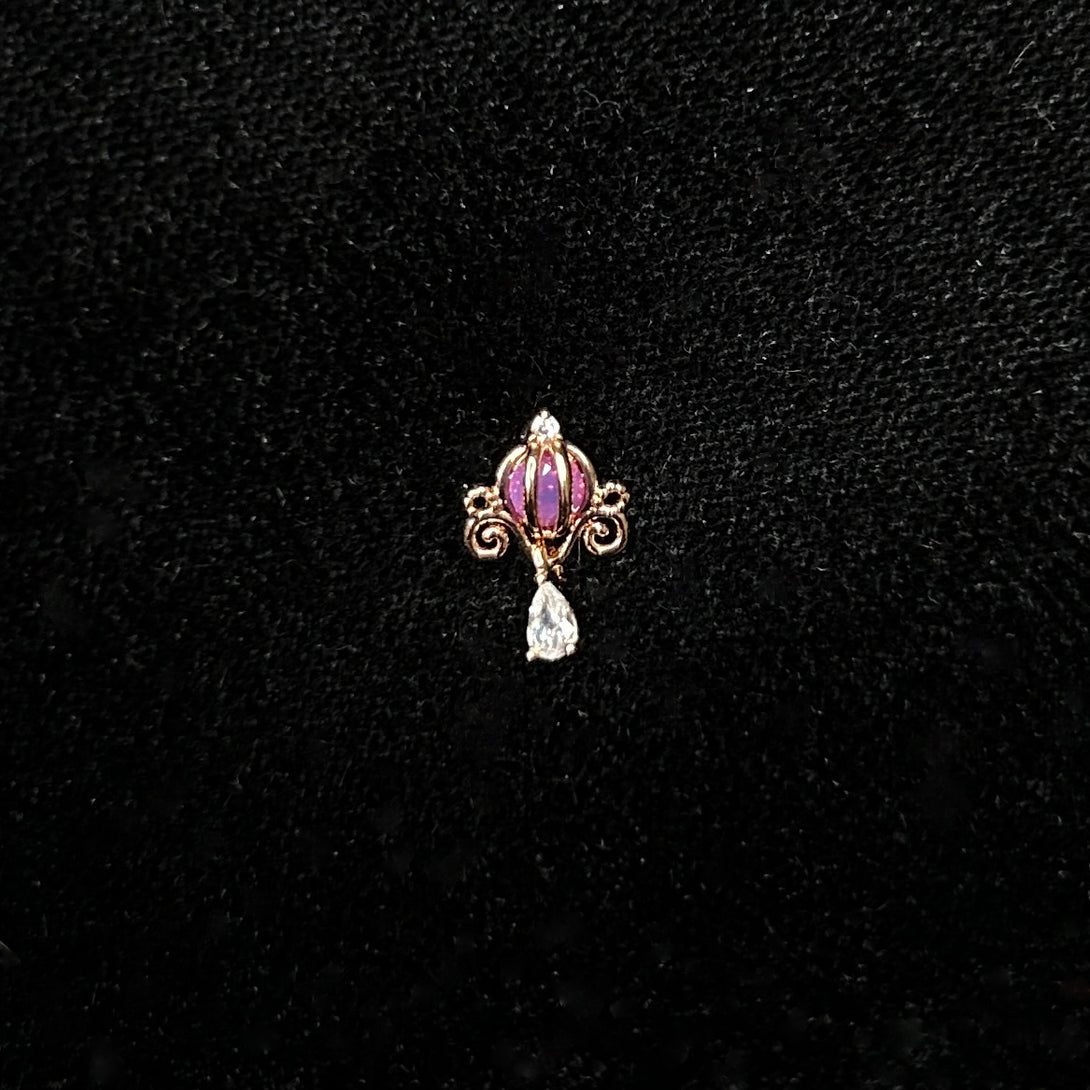 Pumpkin Carriage Crystal Drop Barbell Stud