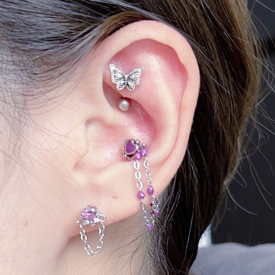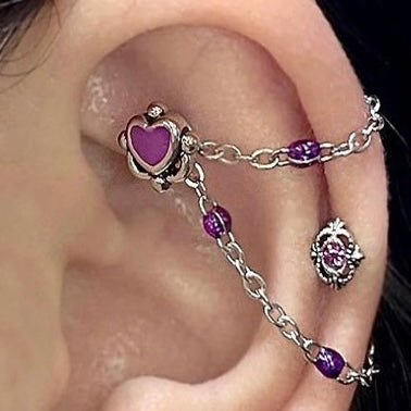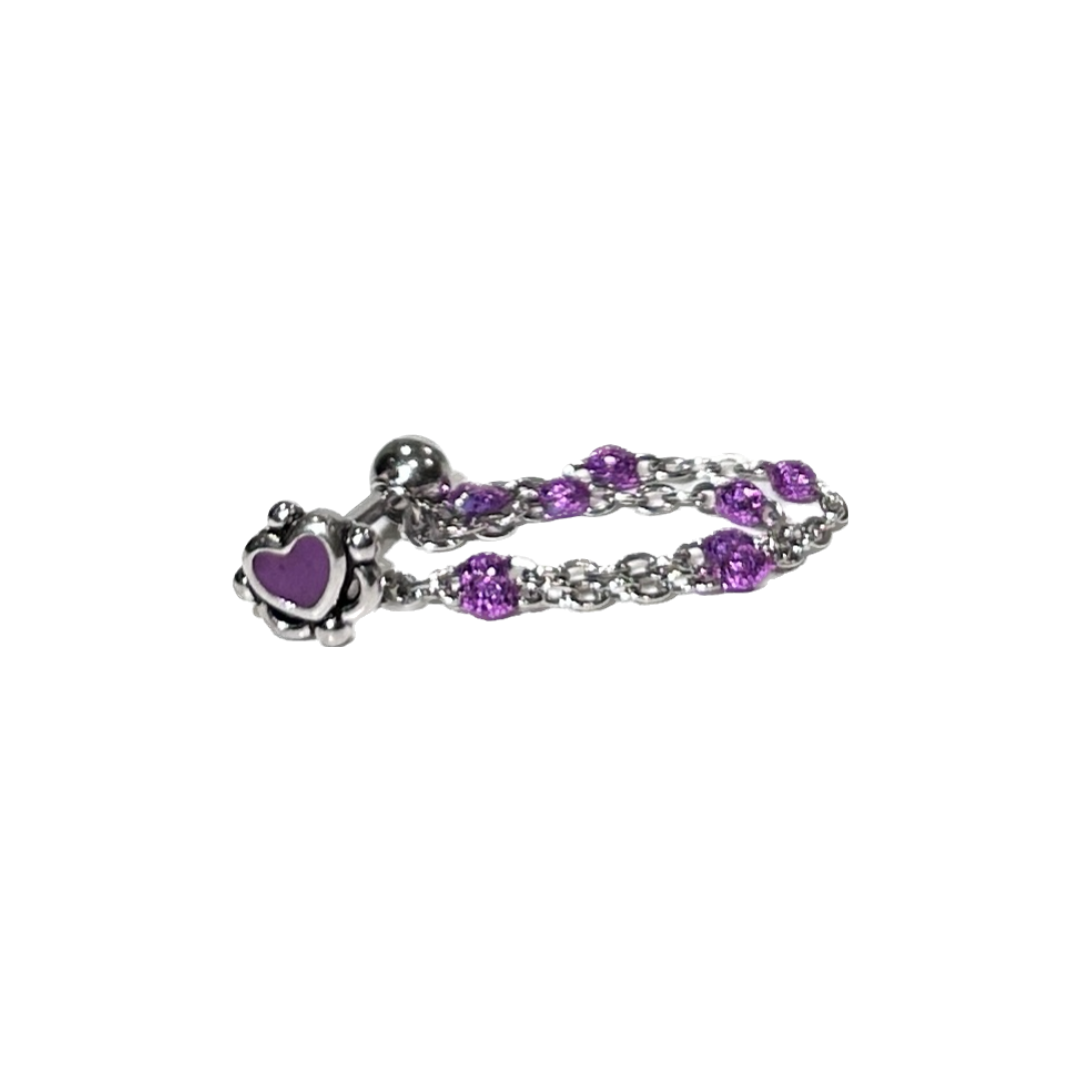 Purple Heart Cartilage Barbell Stud With Purple Beaded Chain