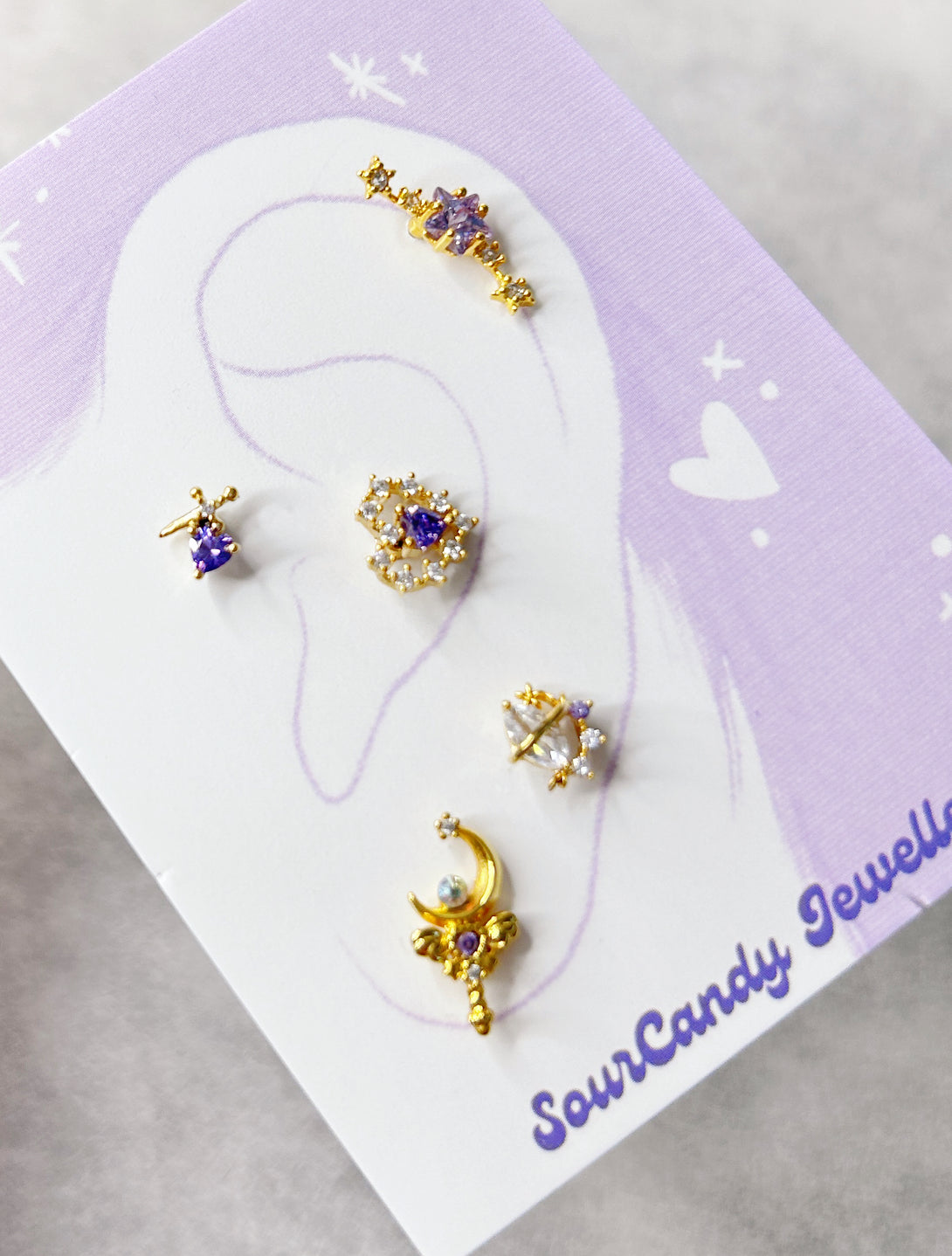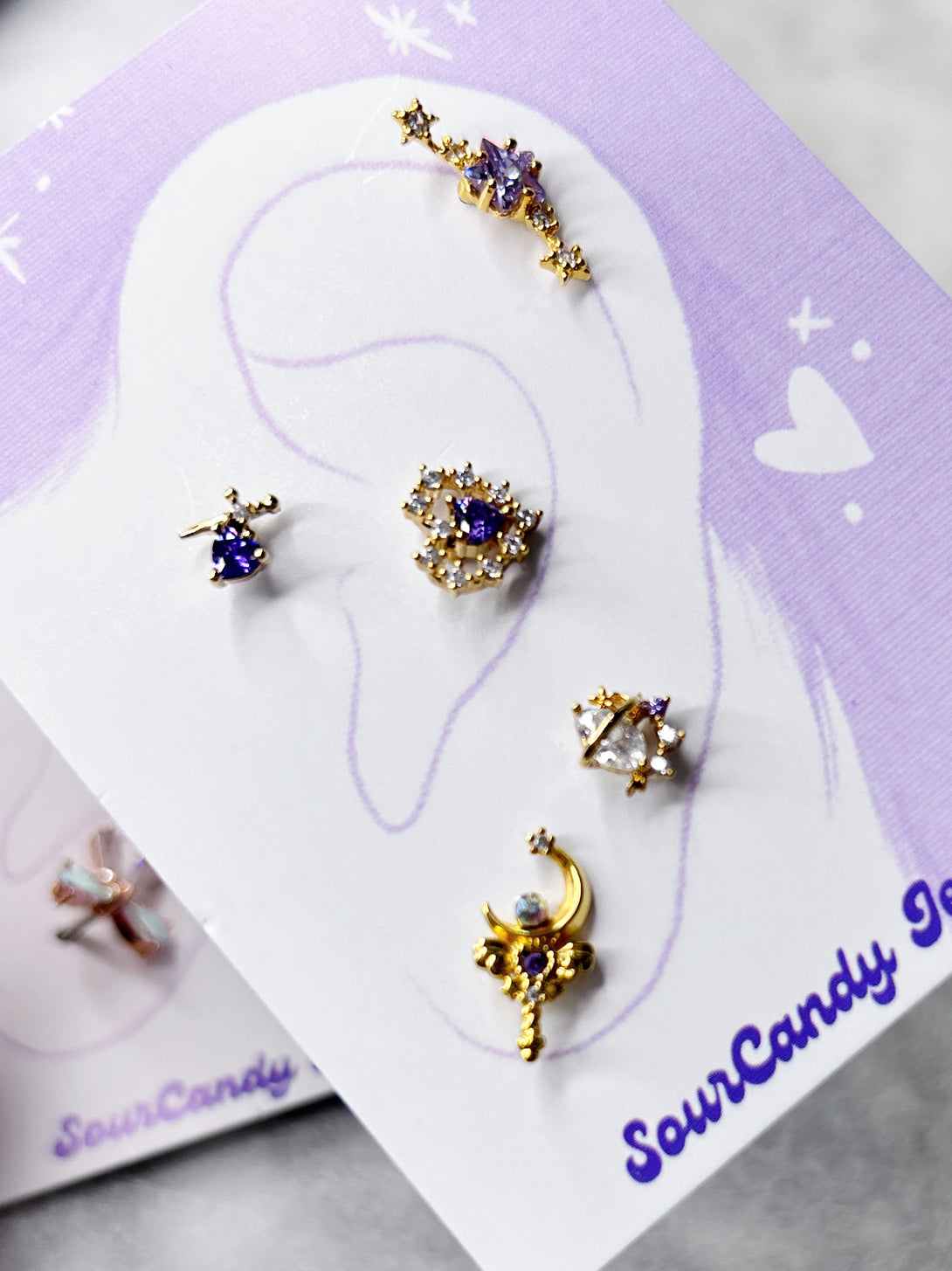 Korean Piercings Jewellery use a lot of colourful gems and crystal, different from traditional gold or sliver designs.
