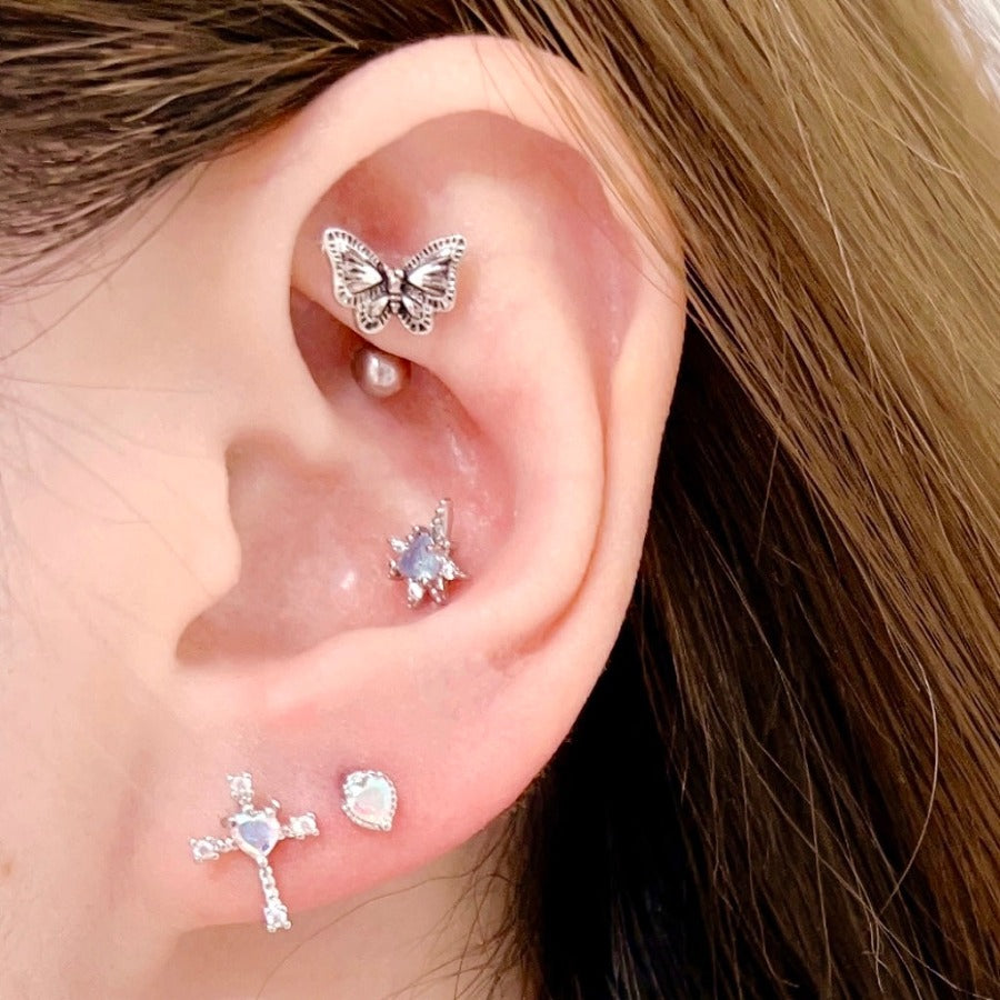Korean Piercings Jewellery use a lot of colourful gems and crystal, different from traditional gold or sliver designs.