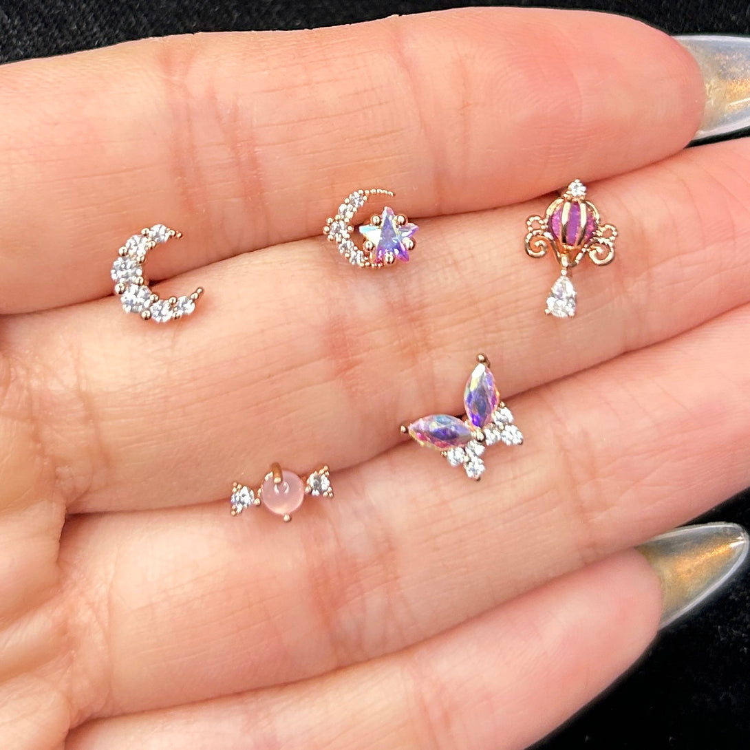 Korean Piercings Jewellery use a lot of colourful gems and crystal, different from traditional gold or sliver designs.