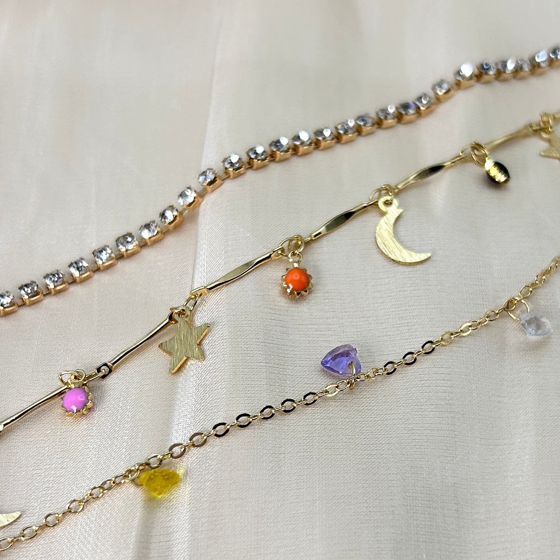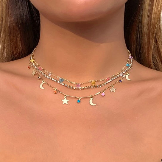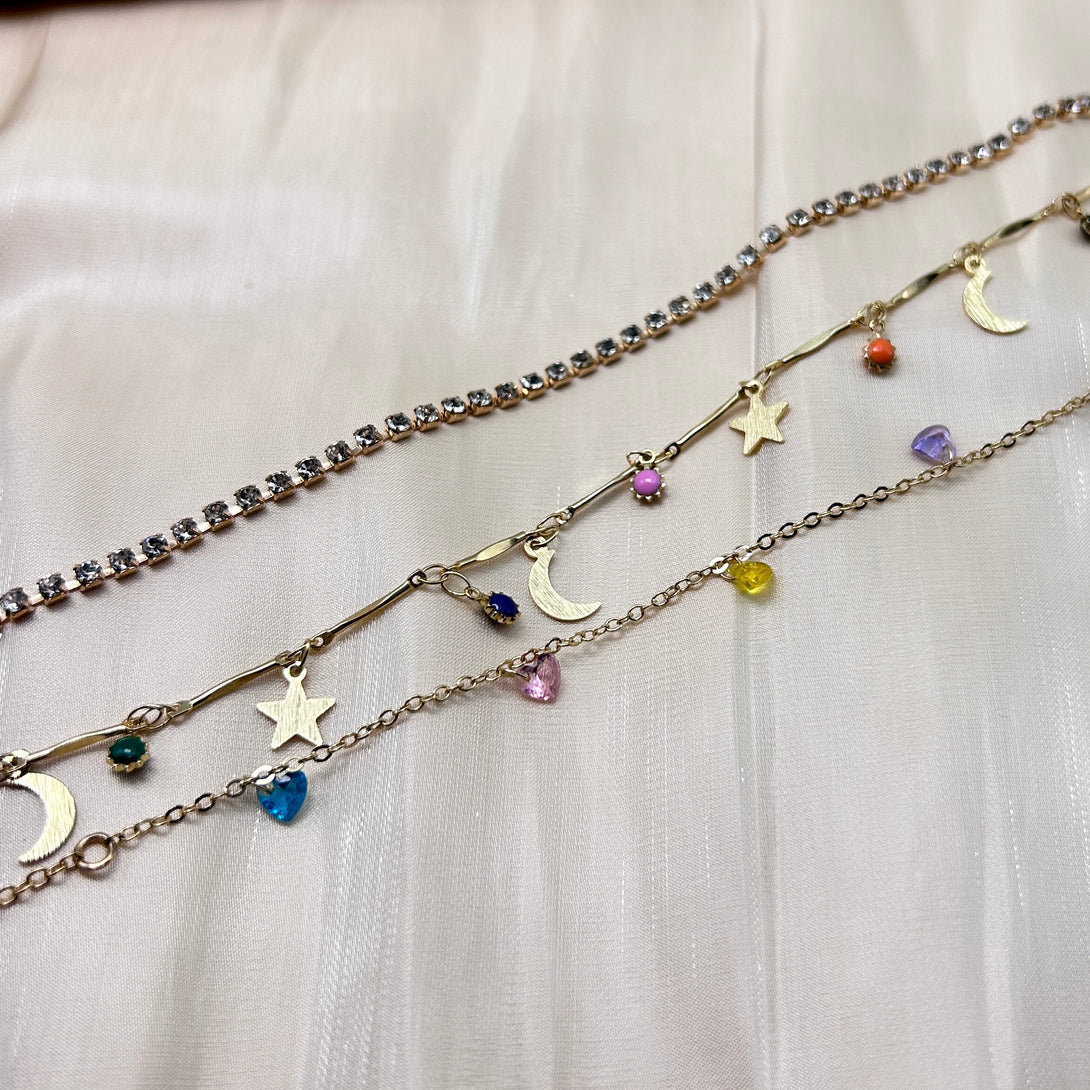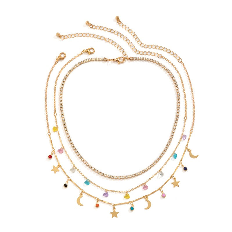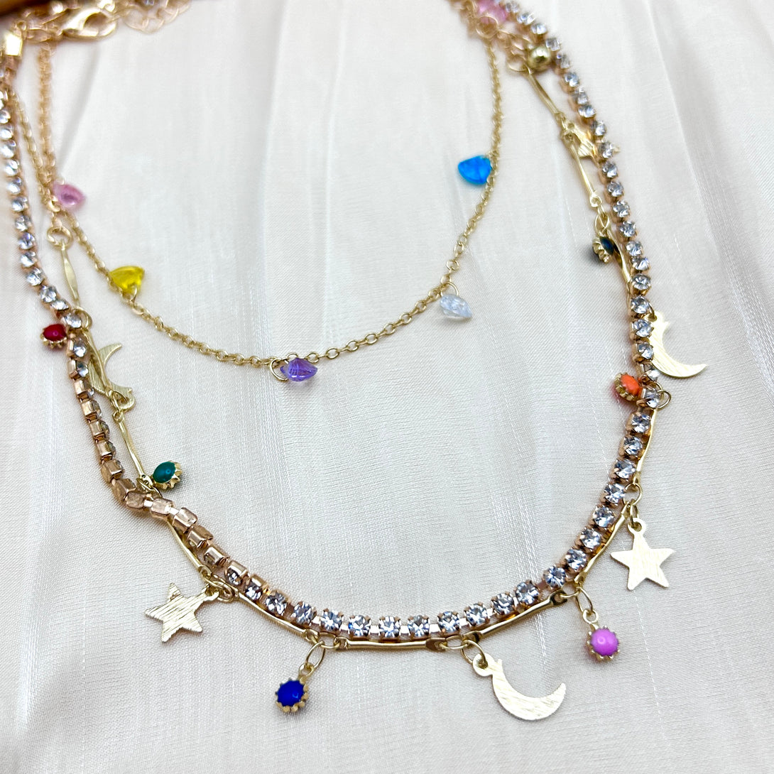 Set of 3 Rainbow Heart Gems Moon Night Necklace