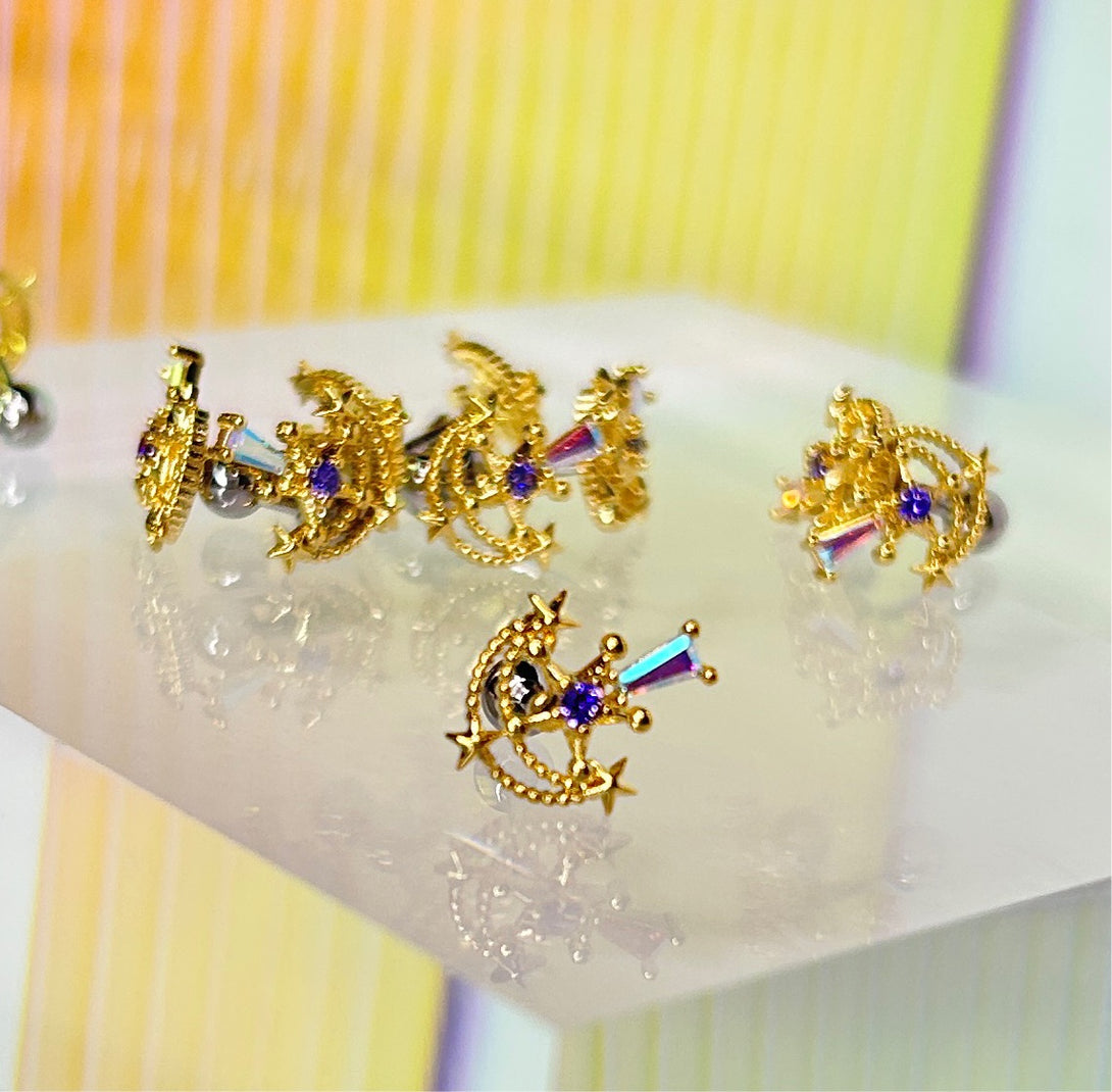 Korean Piercings Jewellery use a lot of colourful gems and crystal, different from traditional gold or sliver designs.