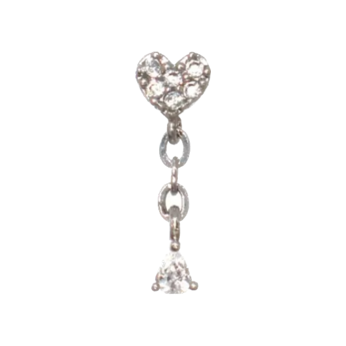 Sliver Heart Crystal Drop Barbell Stud