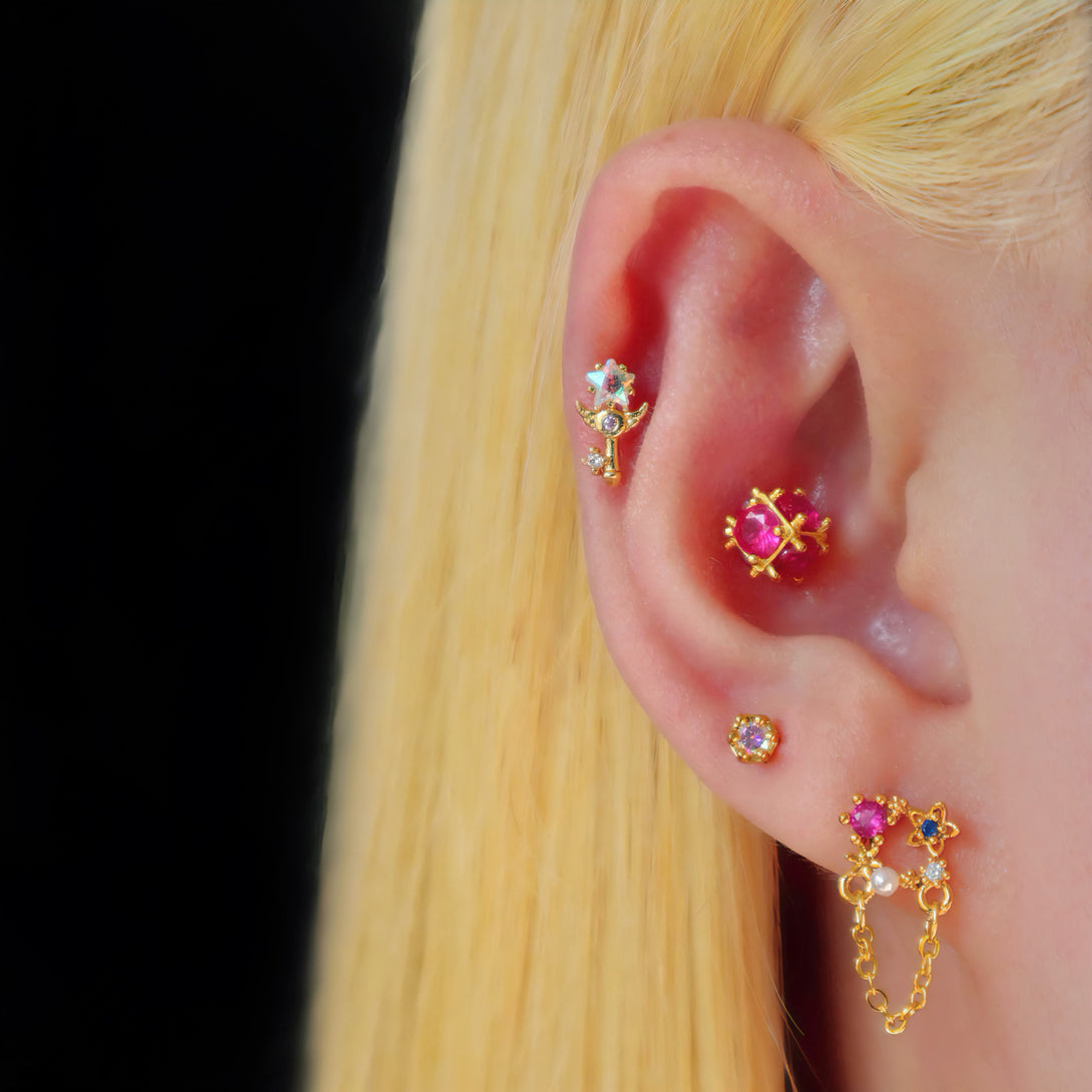 Korean Piercings Jewellery use a lot of colourful gems and crystal, different from traditional gold or sliver designs.